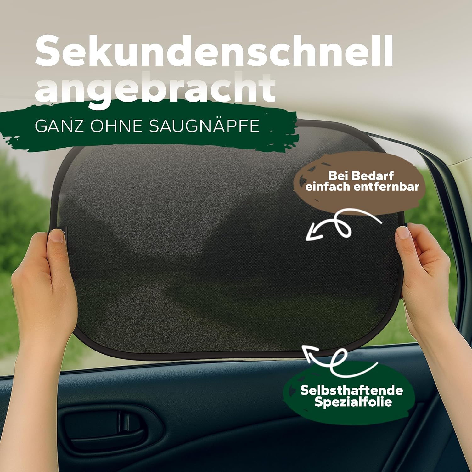 • Самозалепващ се монтаж – не са необходими вендузи: Благодарение на иновативно електростатично фолио, сенникът залепва директно към прозореца на автомобила като магнит – без вендузи или лепило. Сваля се без да оставя следи, може да се премести по всяко време и е изключително лесен за употреба.