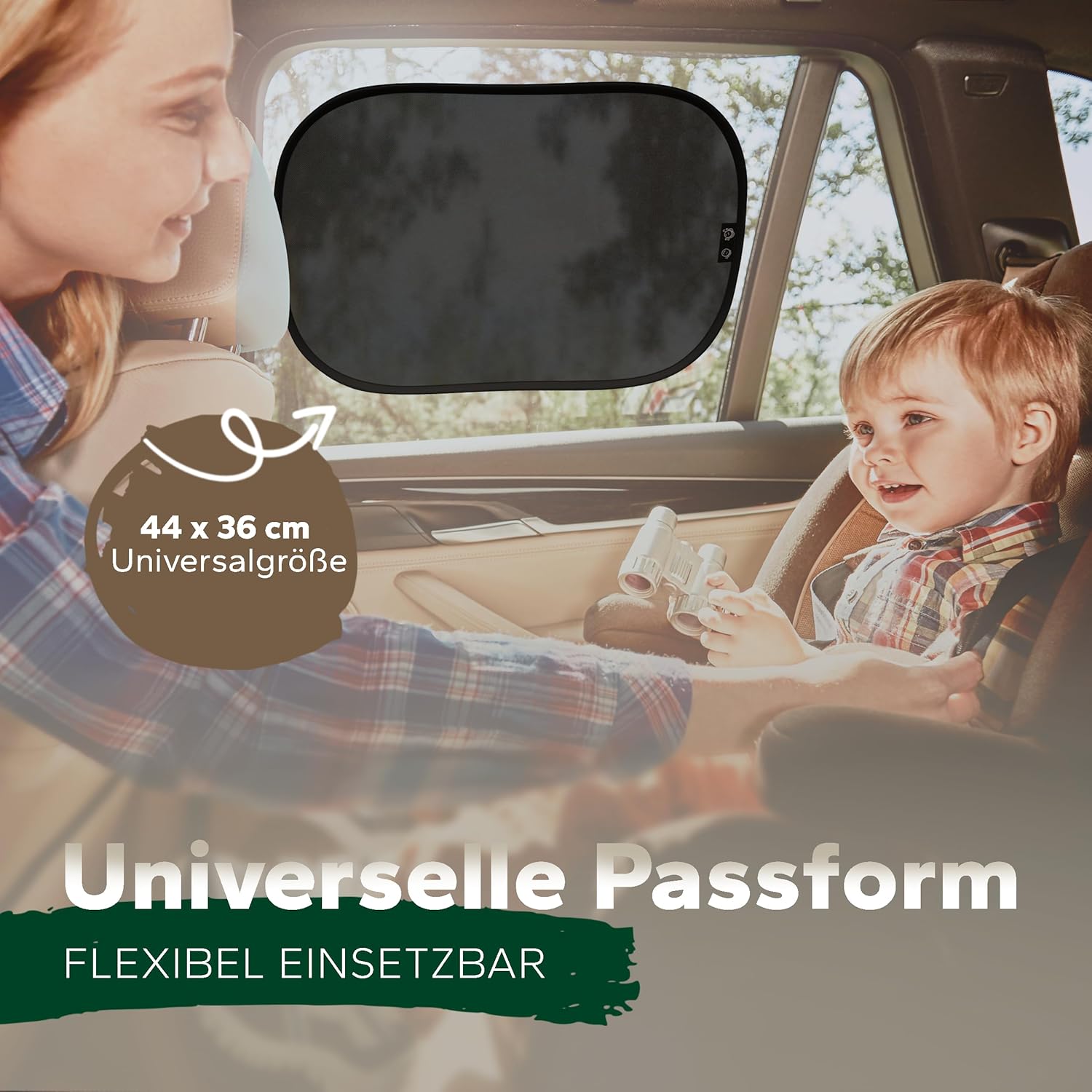 • Универсален размер – 44 x 36 см: Практичният размер е подходящ за повечето странични прозорци на автомобили, SUV-ове и семейни превозни средства. Лесен за употреба – перфектно покритие, без да пречи на видимостта.