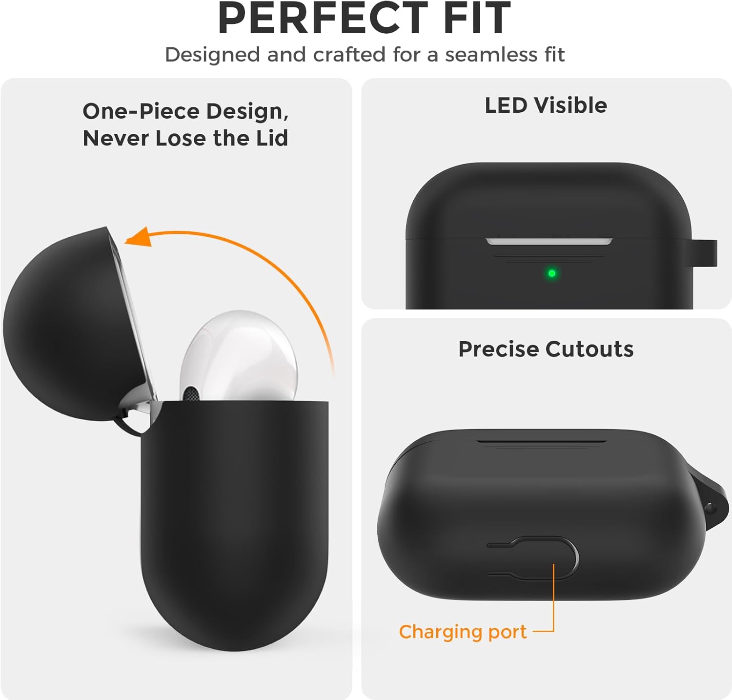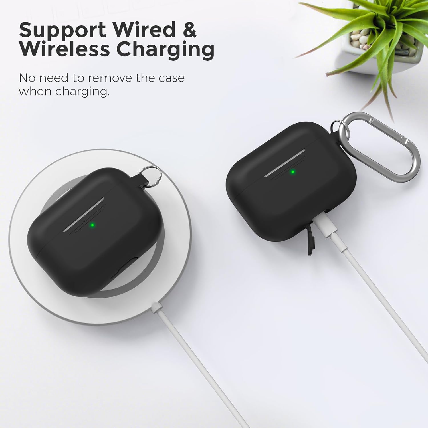 Силиконов калъф AHASTYLE за Airpods Pro с почистваща писалка, защитен калъф и кожен калъф за AirPods Pro 1-во/2-ро поколение [Видим преден LED] [Безжично зареждане] Съвместим с Apple Airpods Pro