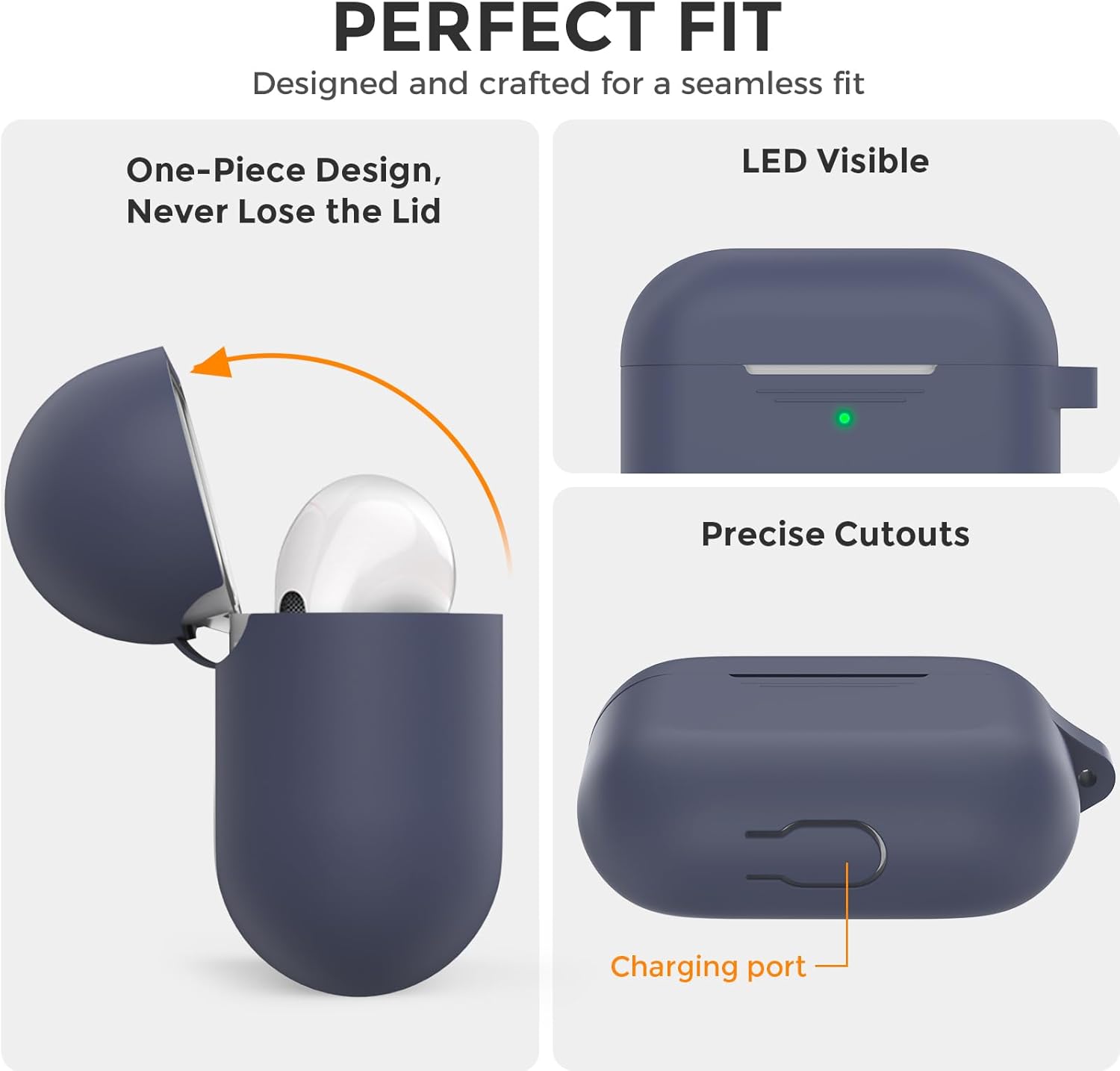 • Видим LED индикатор: дизайнът на пантите гарантира, че капакът остава плътно затворен и е съвместим с безжично зареждане, видим LED индикатор.