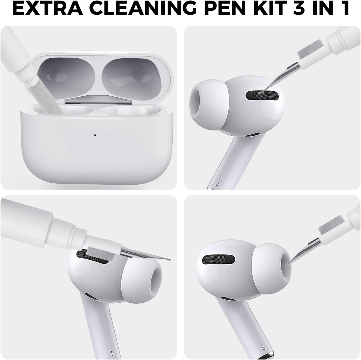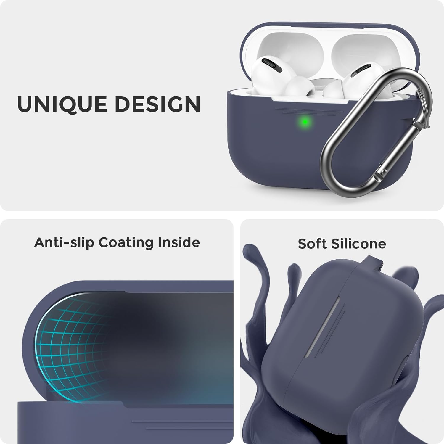 Силиконов калъф AHASTYLE за Airpods Pro с почистваща писалка, защитен калъф и кожен калъф за AirPods Pro 1-во/2-ро поколение [Видим преден LED] [Безжично зареждане] Съвместим с Apple Airpods Pro
