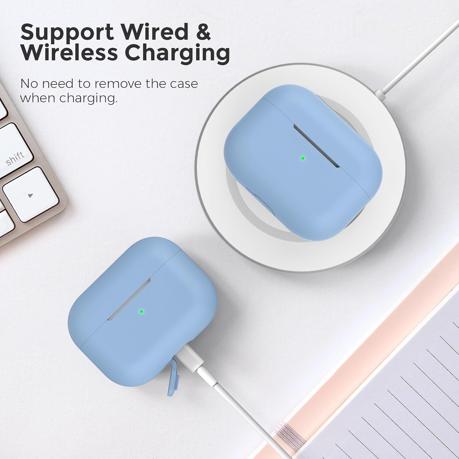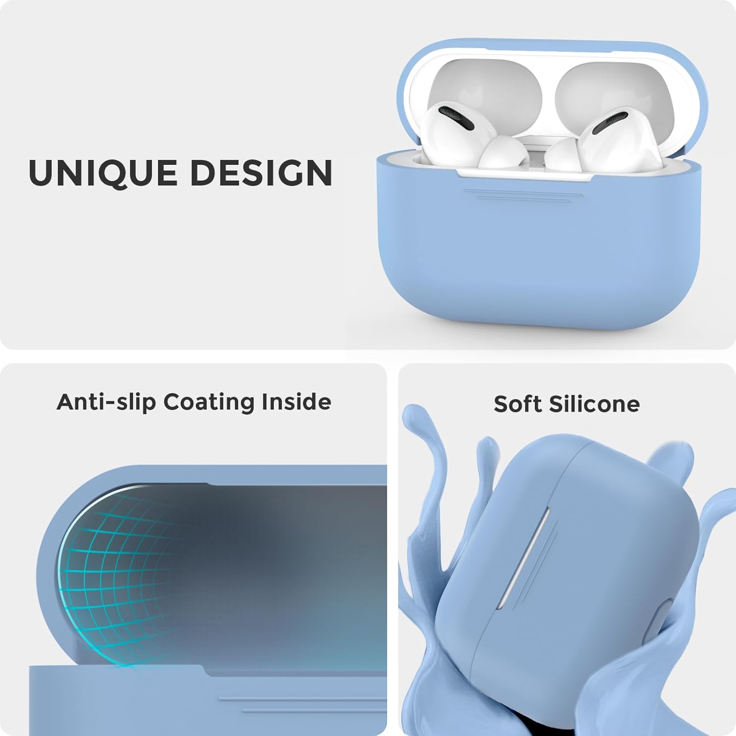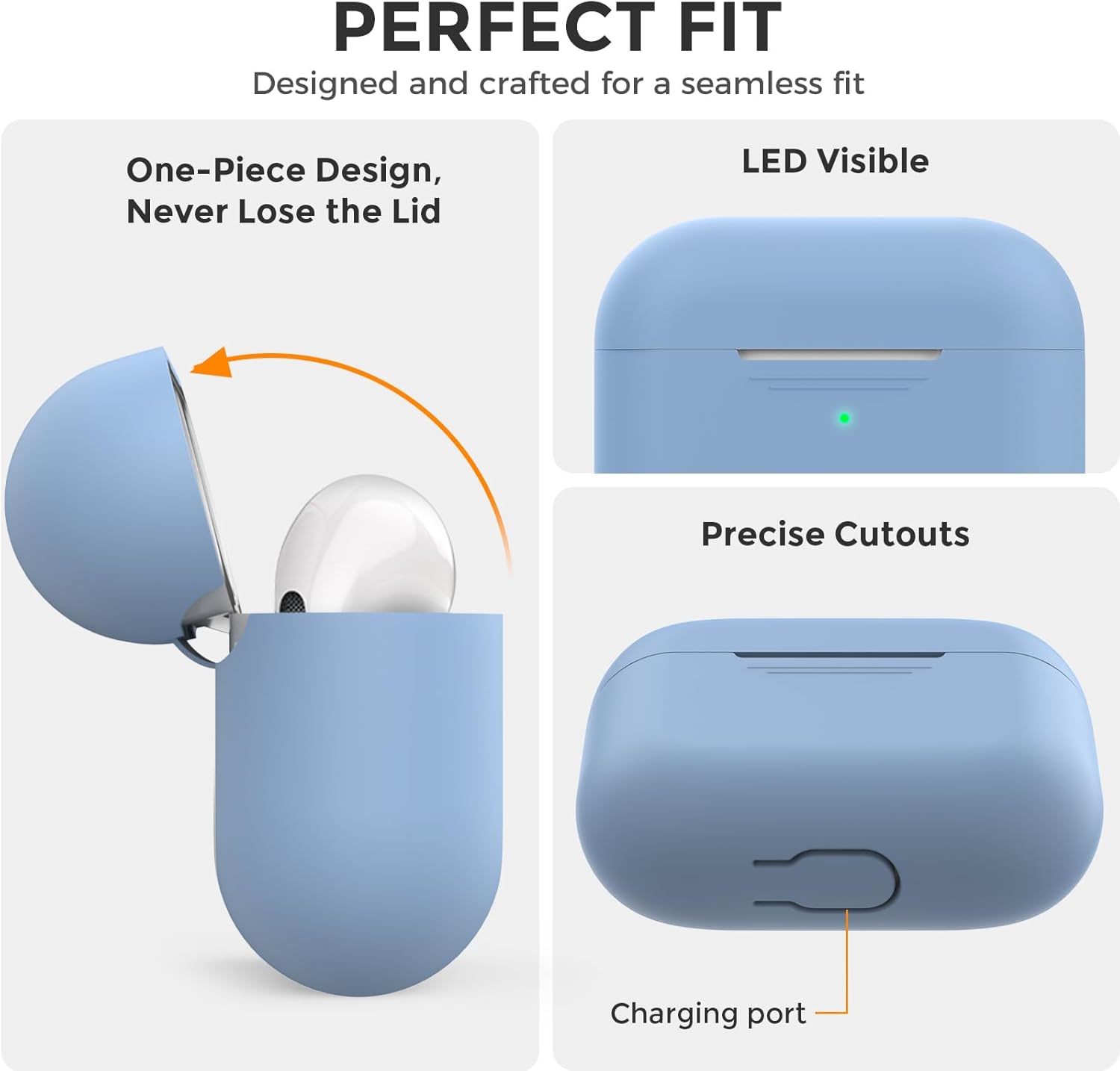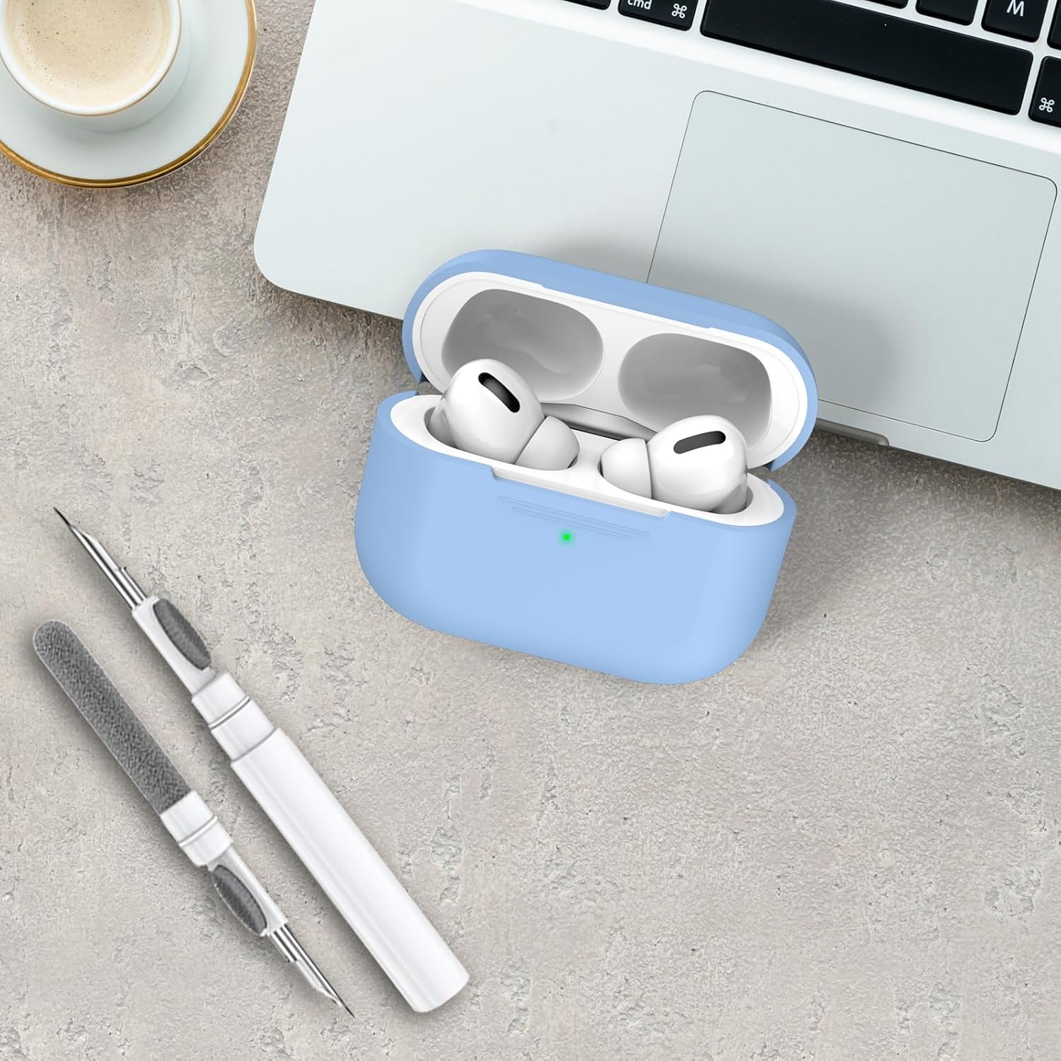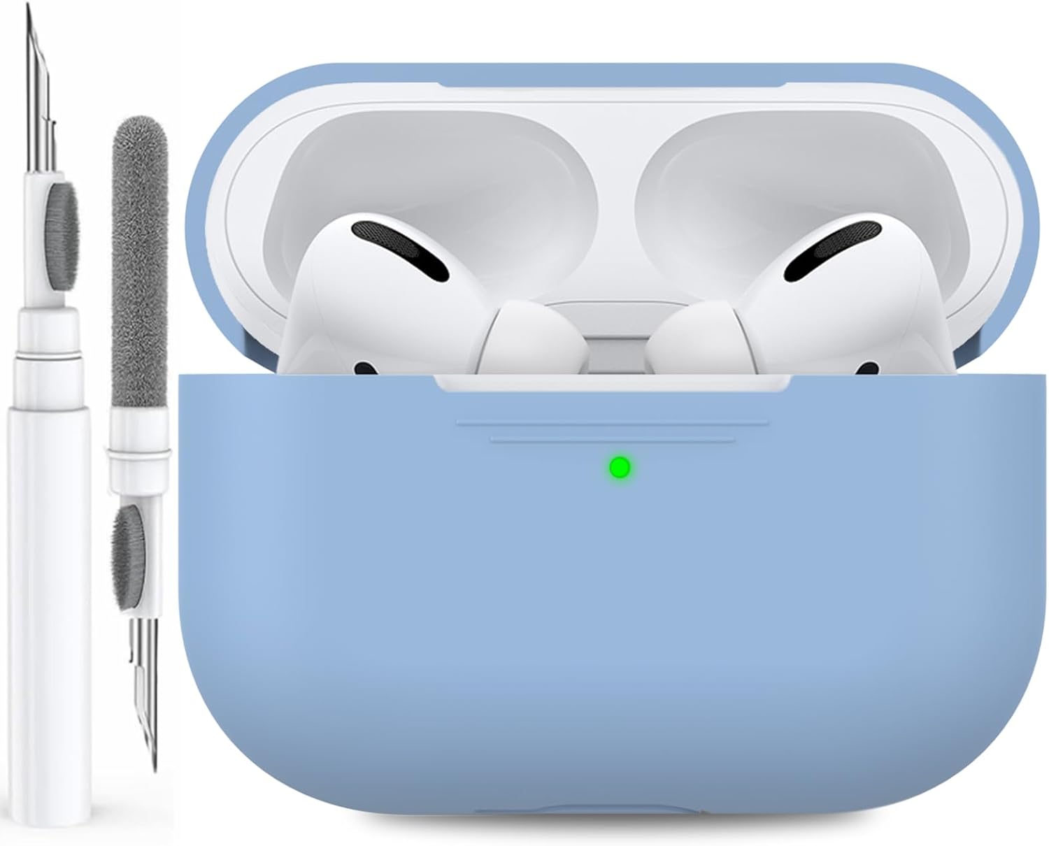 Силиконов калъф AHASTYLE за Airpods Pro с почистваща писалка, защитен калъф и кожен калъф за AirPods Pro 1-во/2-ро поколение [Видим преден LED] [Безжично зареждане] Съвместим с Apple Airpods Pro