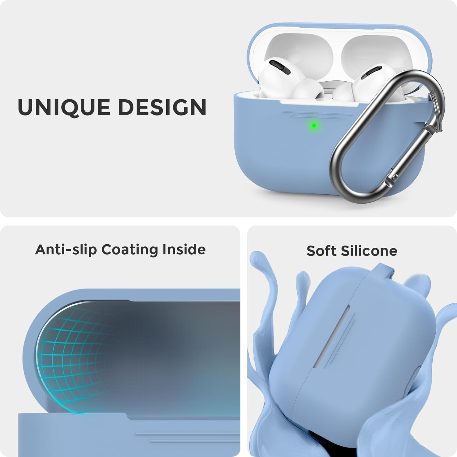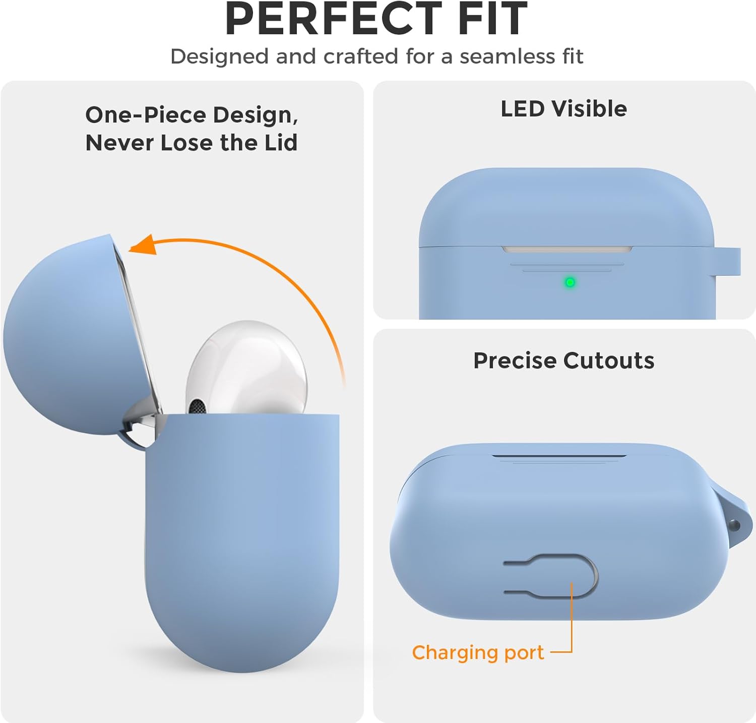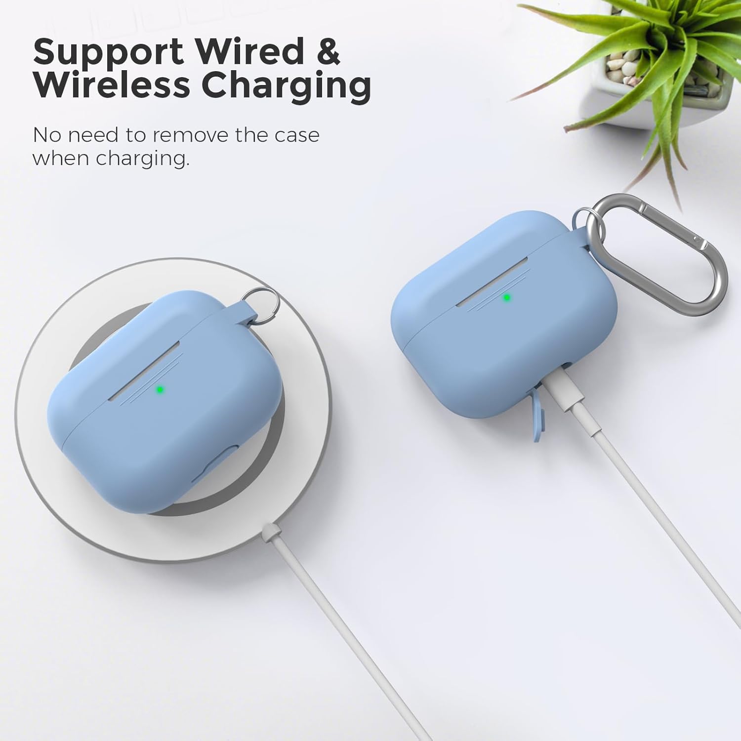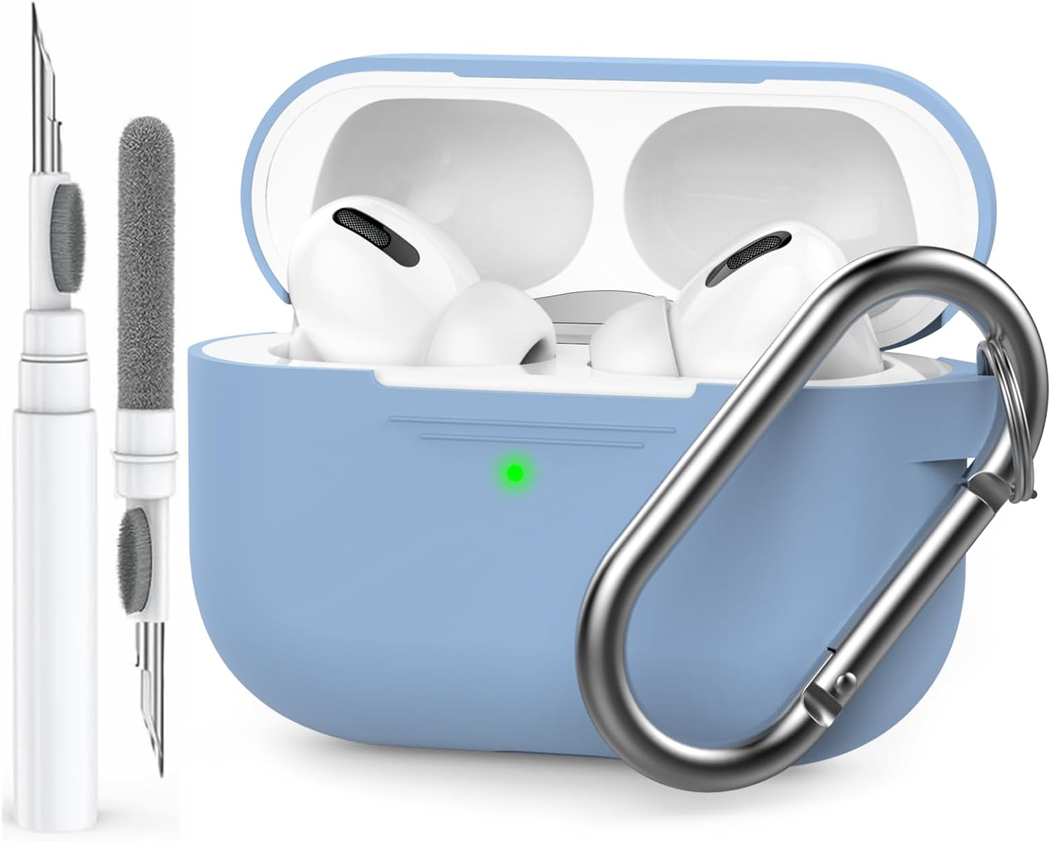 Силиконов калъф AHASTYLE за Airpods Pro с почистваща писалка, защитен калъф и кожен калъф за AirPods Pro 1-во/2-ро поколение [Видим преден LED] [Безжично зареждане] Съвместим с Apple Airpods Pro