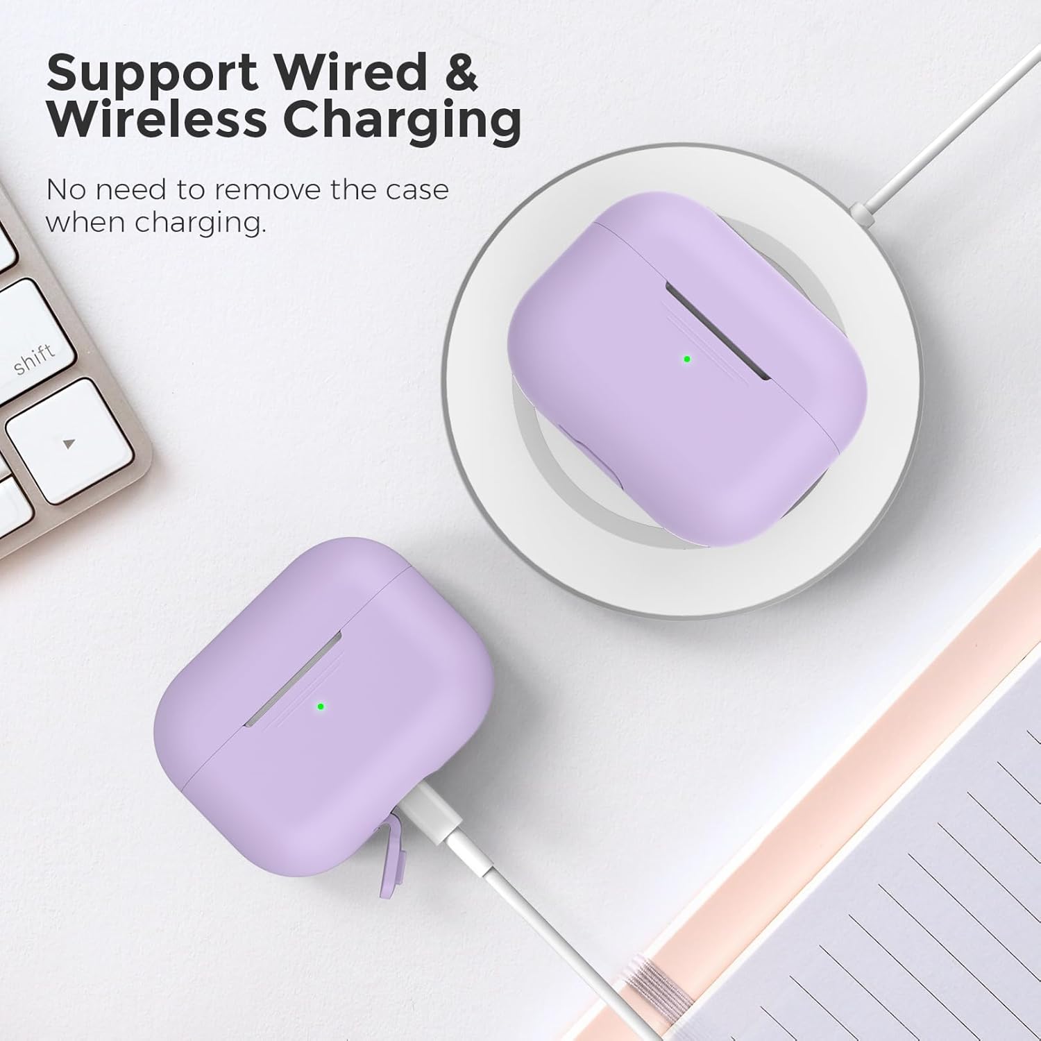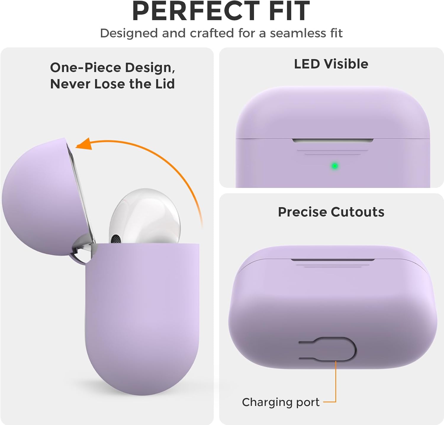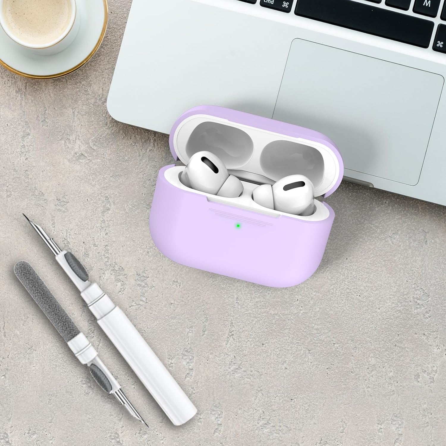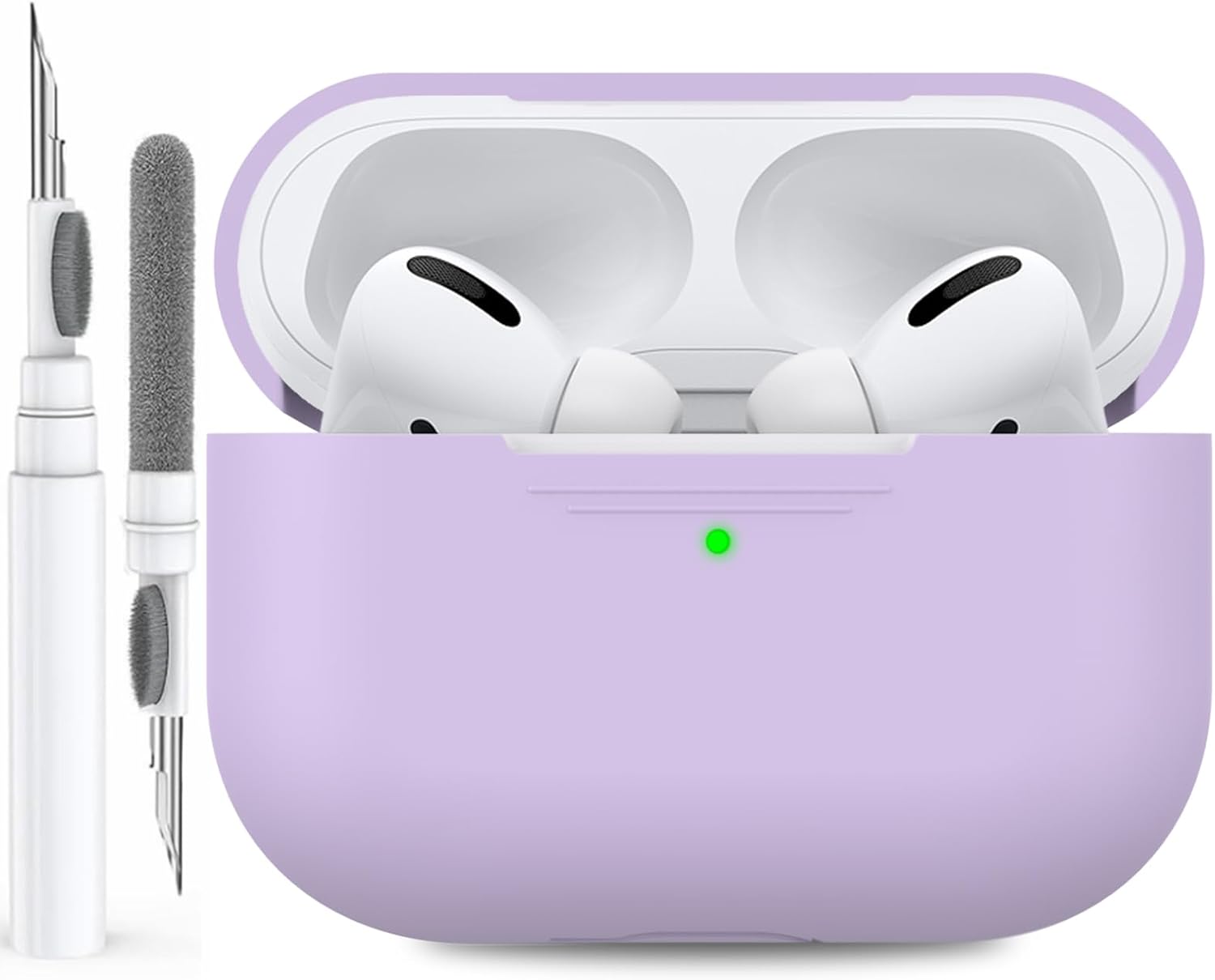 Силиконов калъф AHASTYLE за Airpods Pro с почистваща писалка, защитен калъф и кожен калъф за AirPods Pro 1-во/2-ро поколение [Видим преден LED] [Безжично зареждане] Съвместим с Apple Airpods Pro