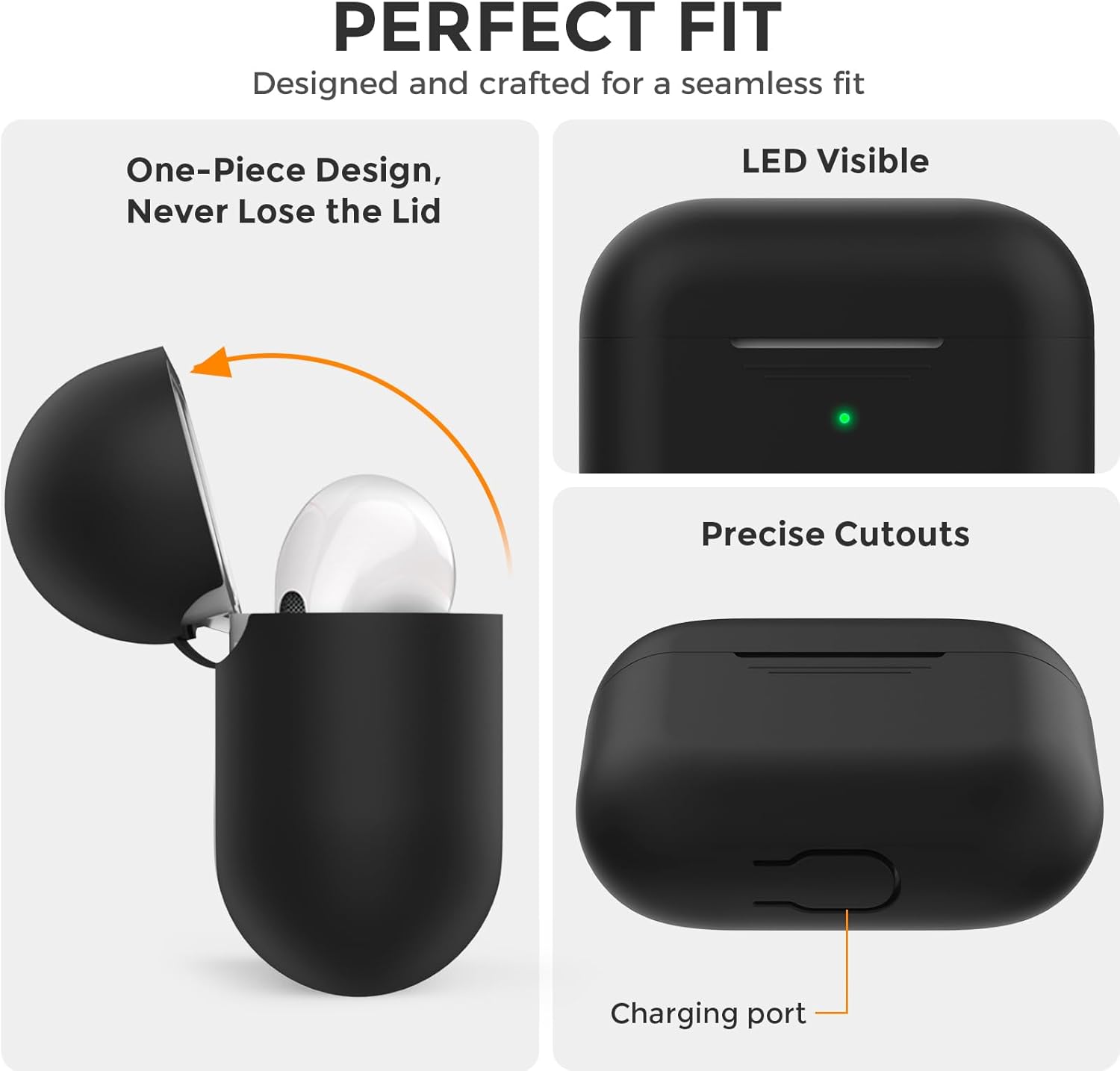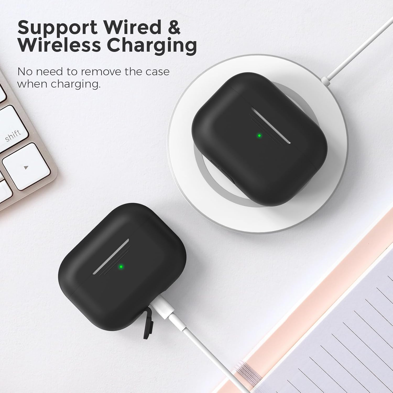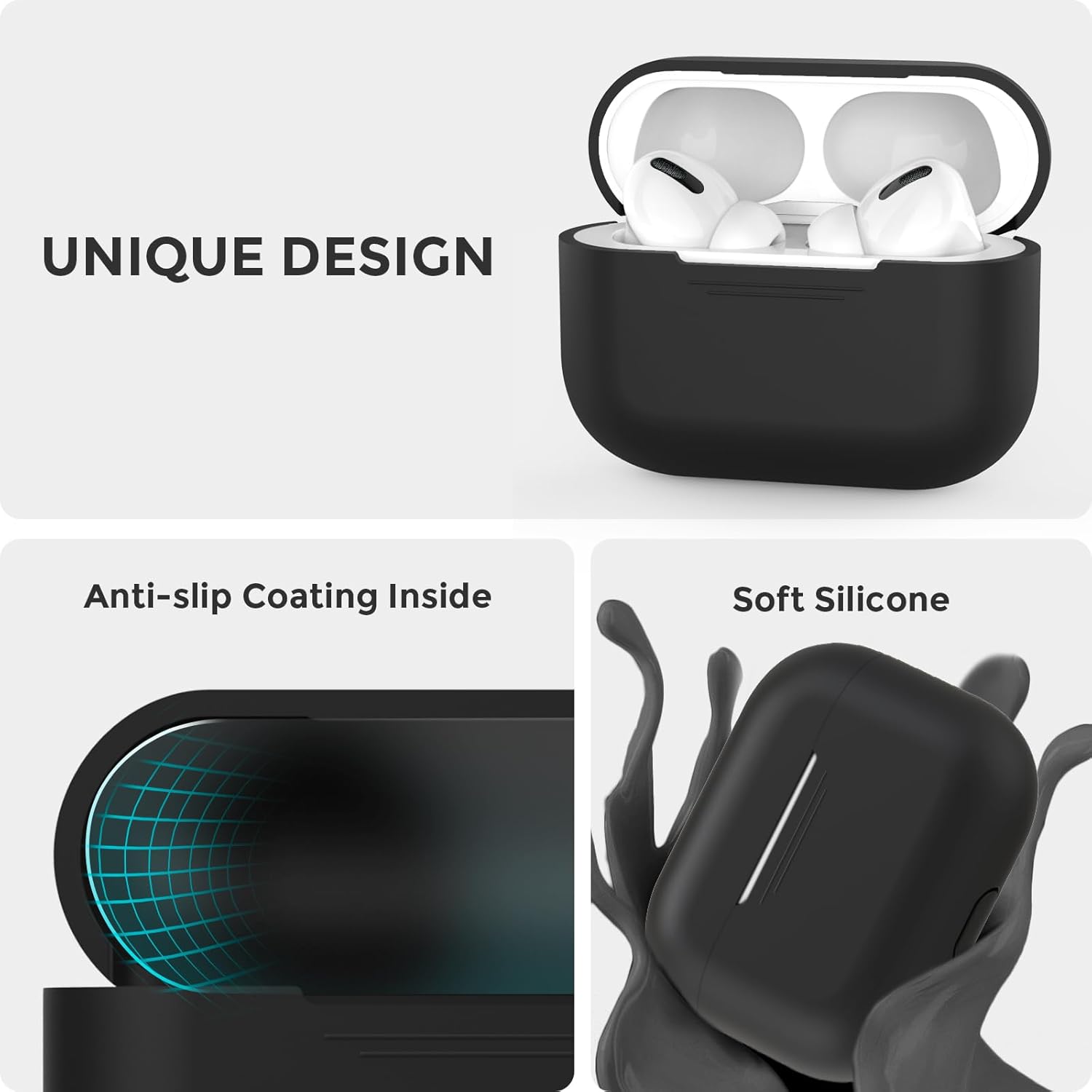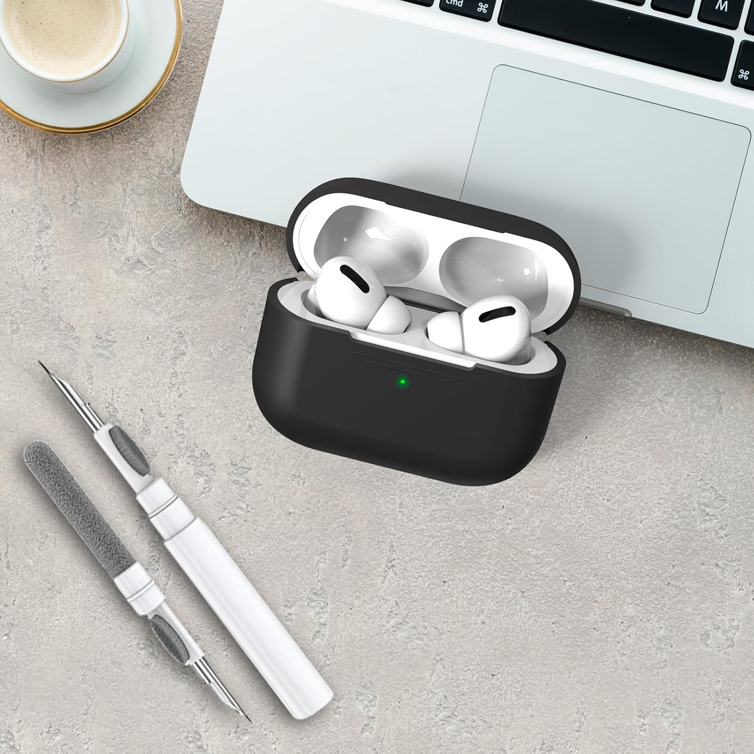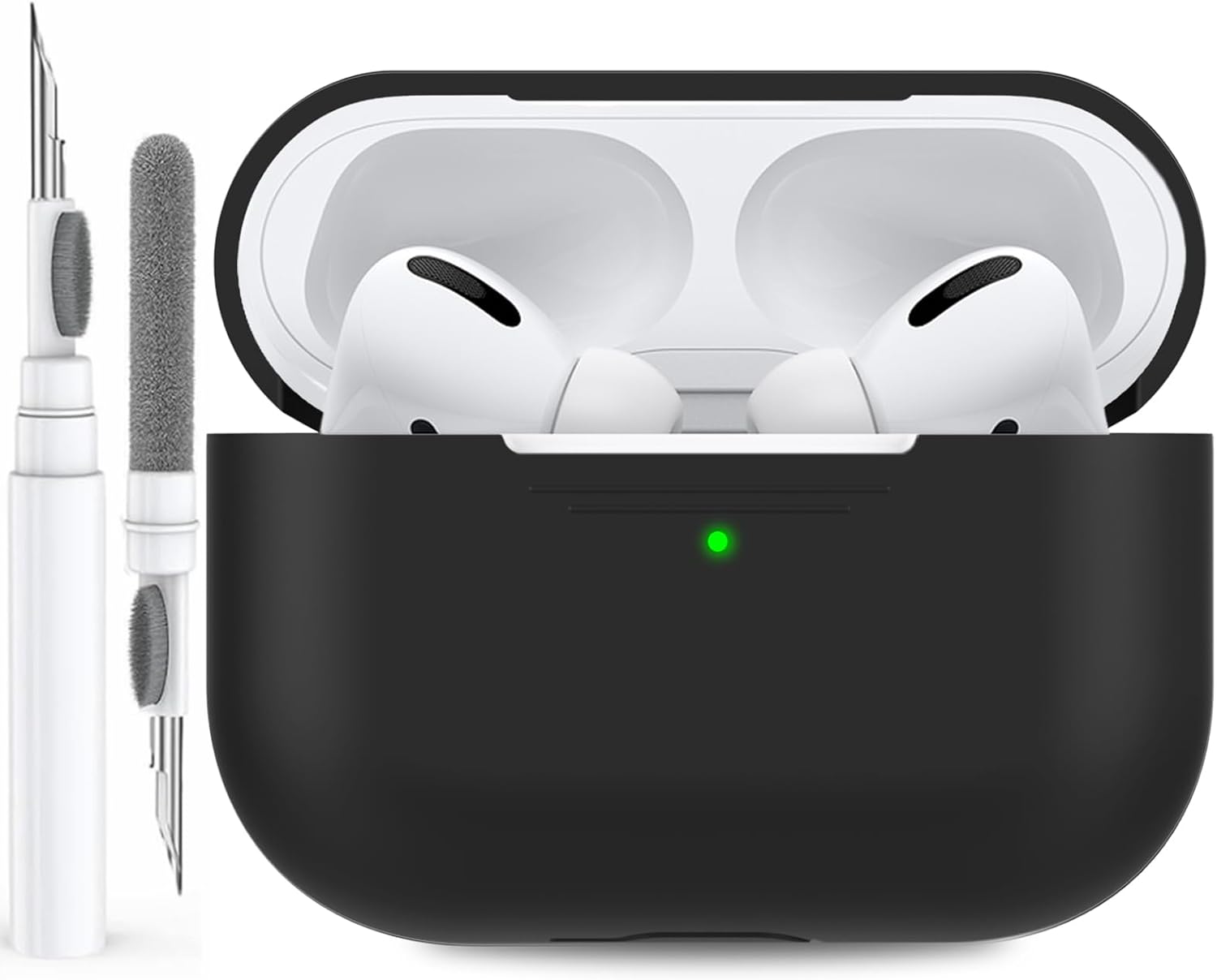 Силиконов калъф AHASTYLE за Airpods Pro с почистваща писалка, защитен калъф и кожен калъф за AirPods Pro 1-во/2-ро поколение [Видим преден LED] [Безжично зареждане] Съвместим с Apple Airpods Pro