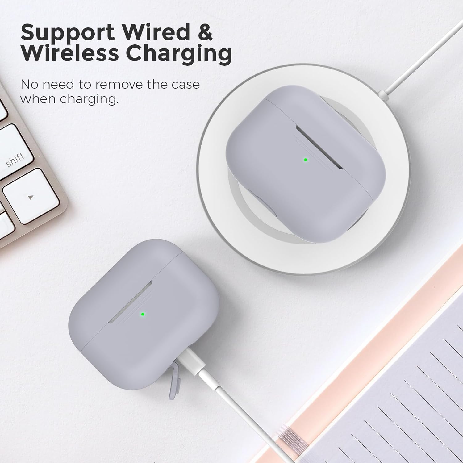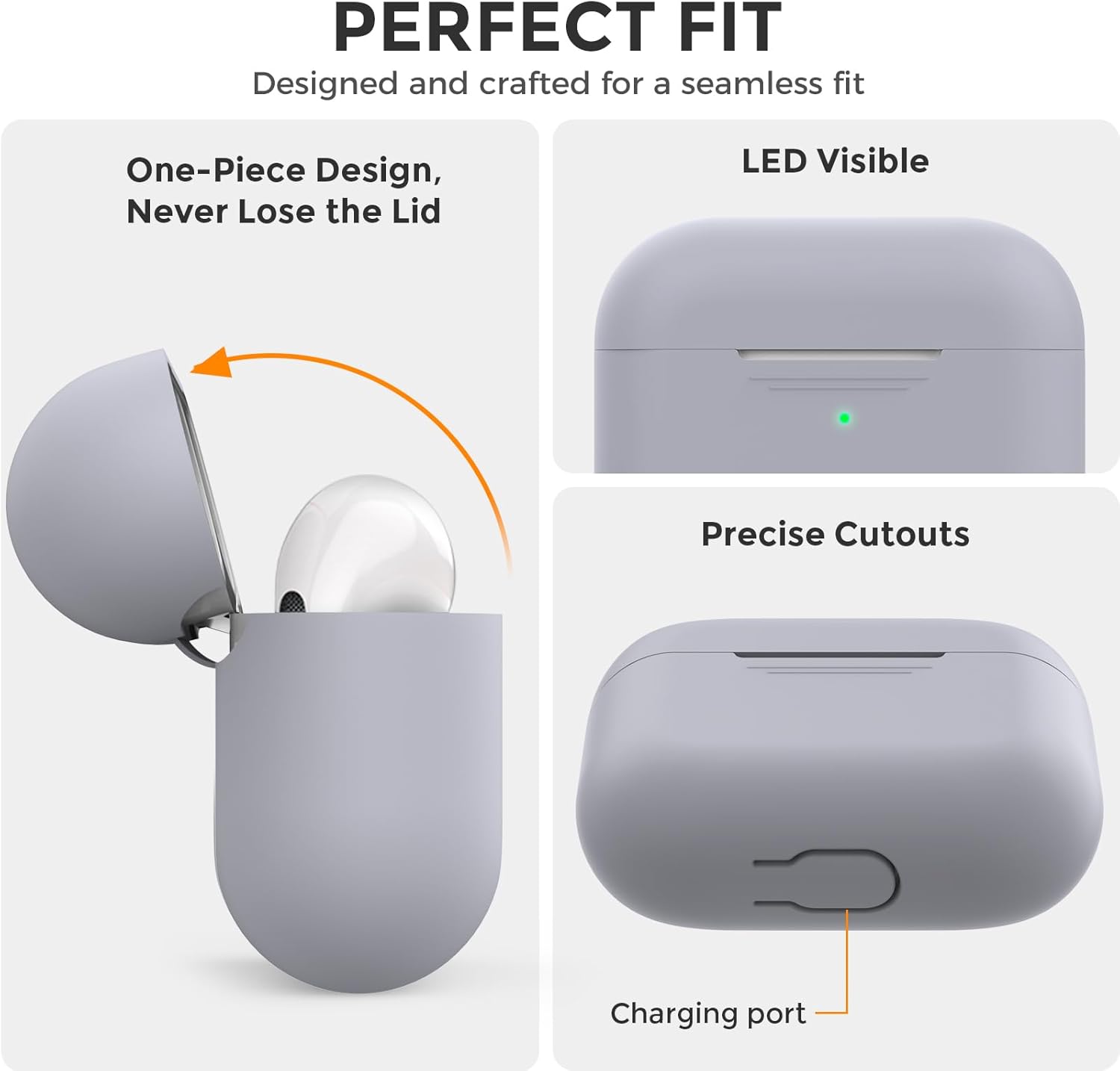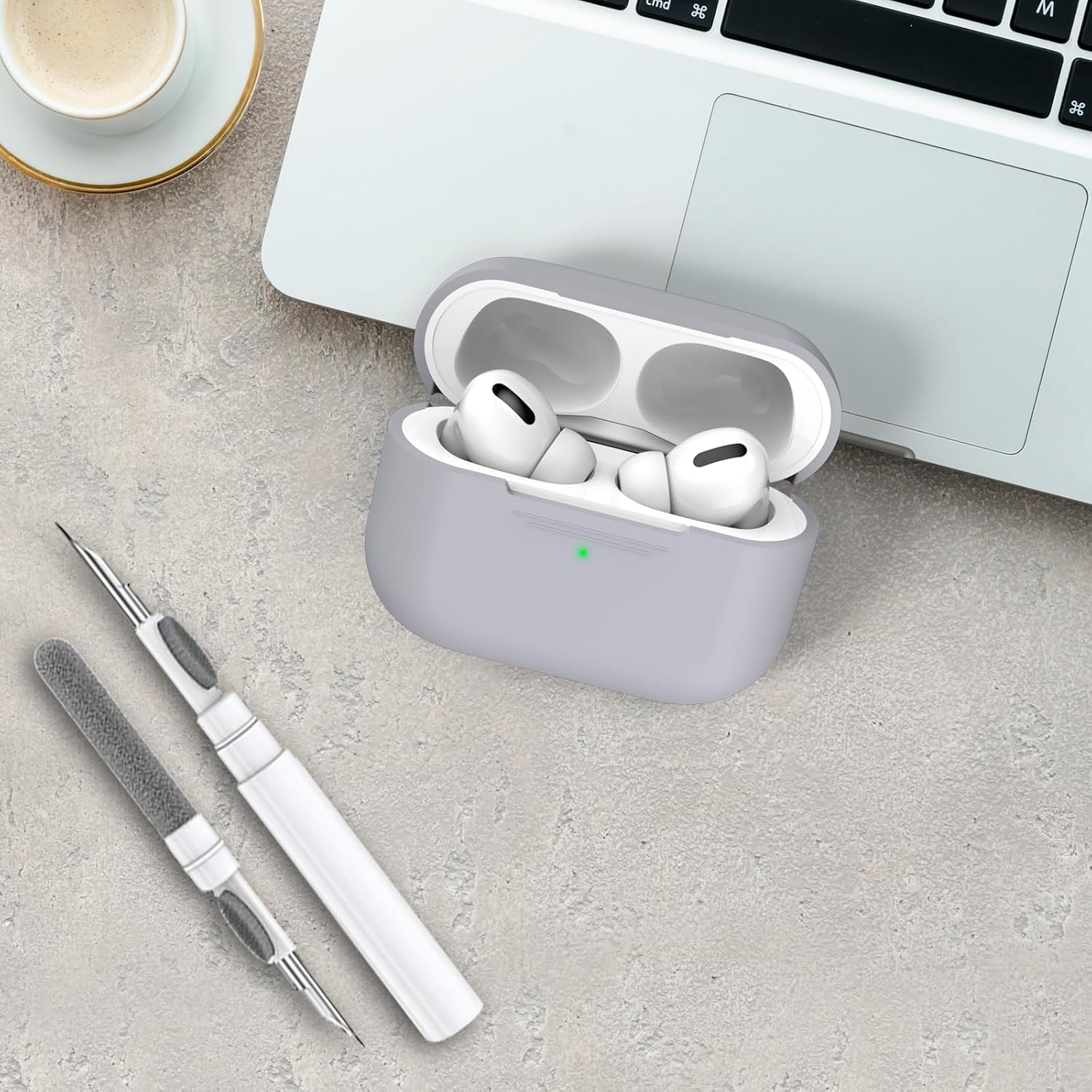 Силиконов калъф AHASTYLE за Airpods Pro с почистваща писалка, защитен калъф и кожен калъф за AirPods Pro 1-во/2-ро поколение [Видим преден LED] [Безжично зареждане] Съвместим с Apple Airpods Pro