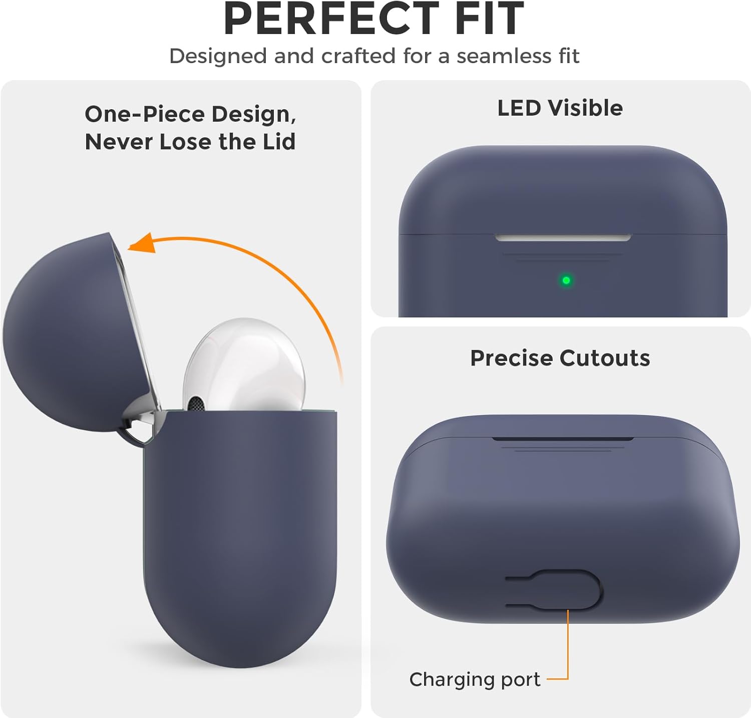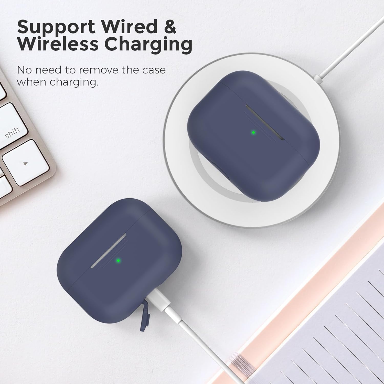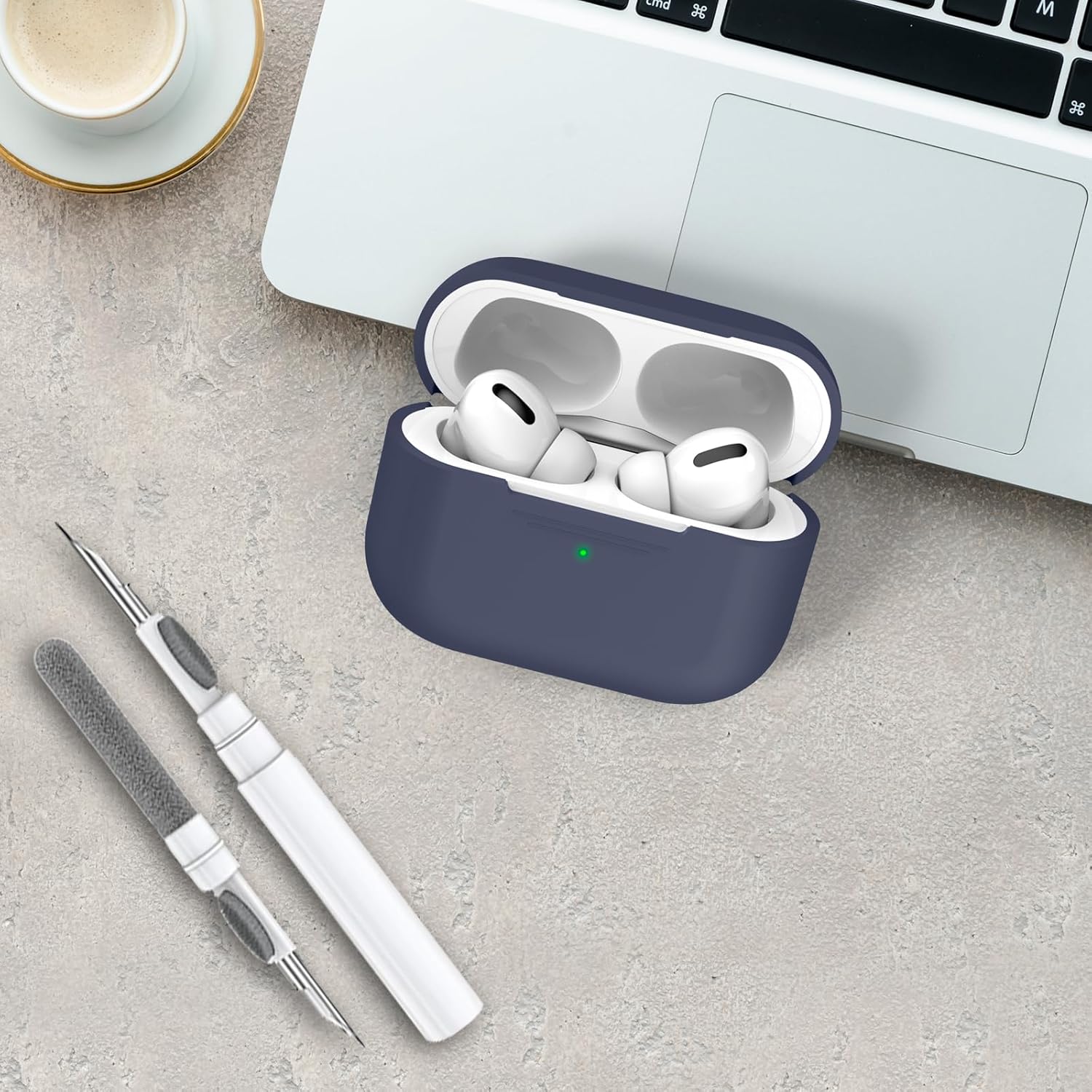 Силиконов калъф AHASTYLE за Airpods Pro с почистваща писалка, защитен калъф и кожен калъф за AirPods Pro 1-во/2-ро поколение [Видим преден LED] [Безжично зареждане] Съвместим с Apple Airpods Pro