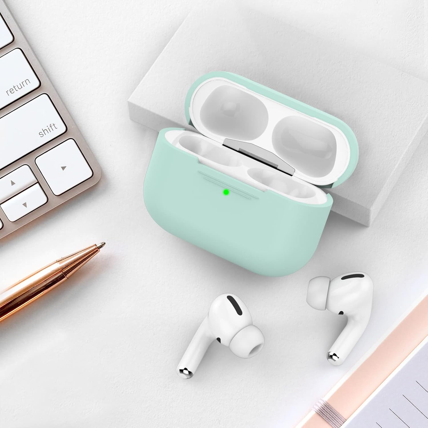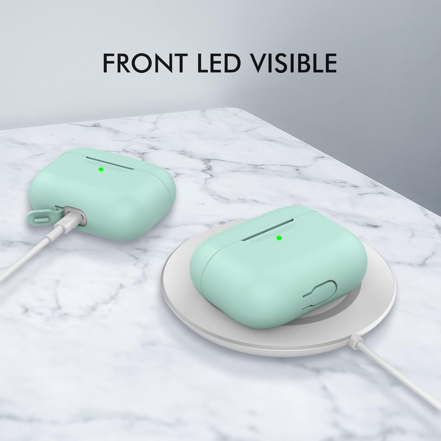 Силиконов калъф AHASTYLE за Airpods Pro, защитен калъф и кожен калъф за AirPods Pro 1-во/2-ро поколение [Видим преден LED] [Безжично зареждане] Съвместим с Airpods Pro 2019