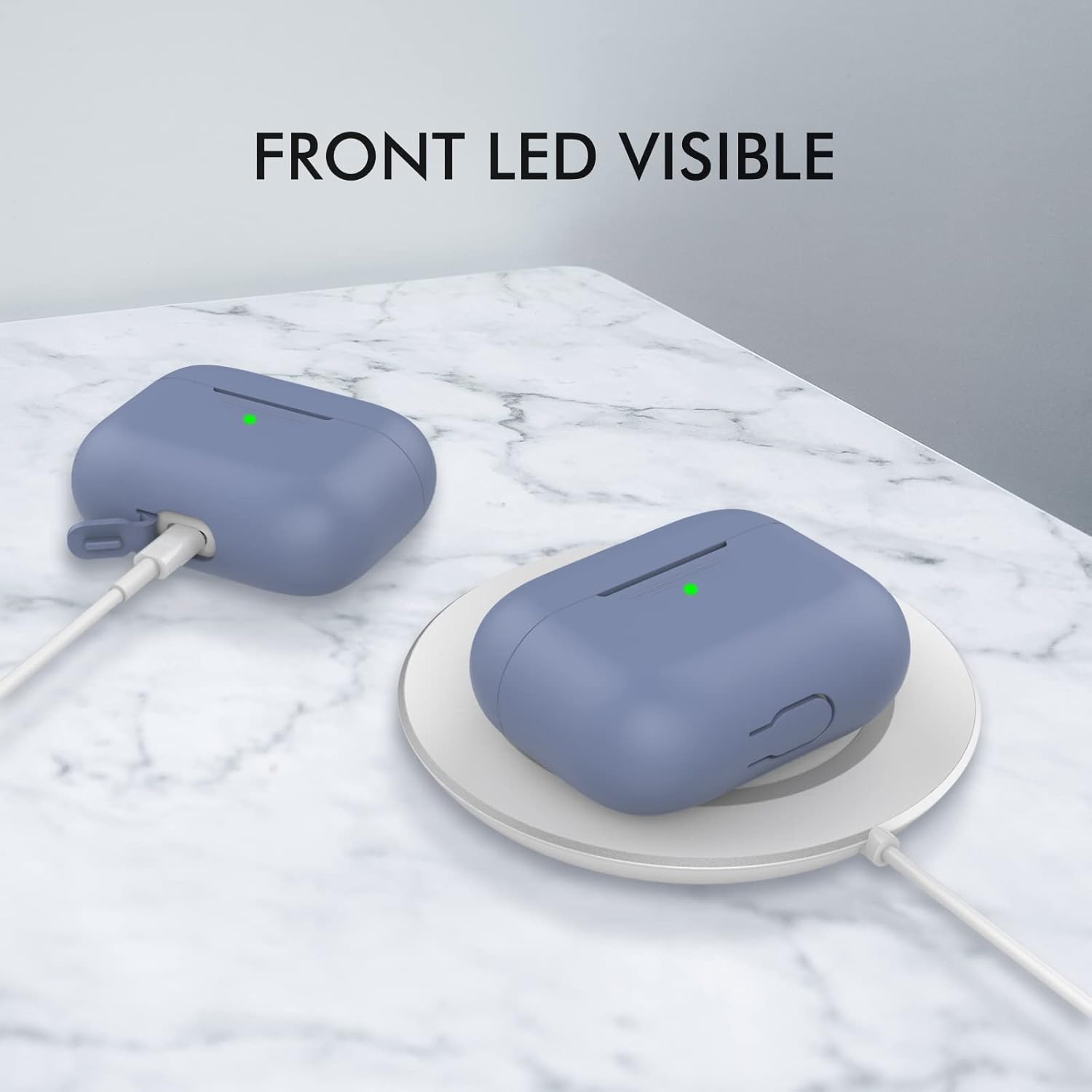 Силиконов калъф AHASTYLE за Airpods Pro, защитен калъф и кожен калъф за AirPods Pro 1-во/2-ро поколение [Видим преден LED] [Безжично зареждане] Съвместим с Airpods Pro 2019