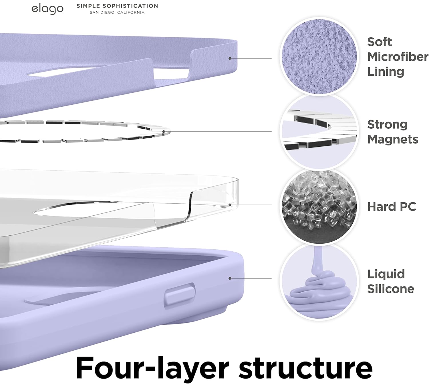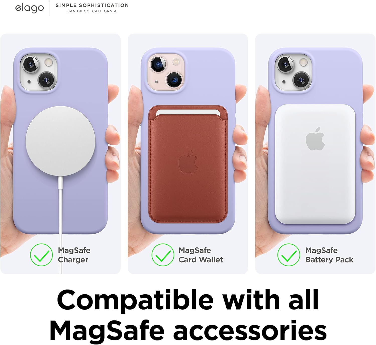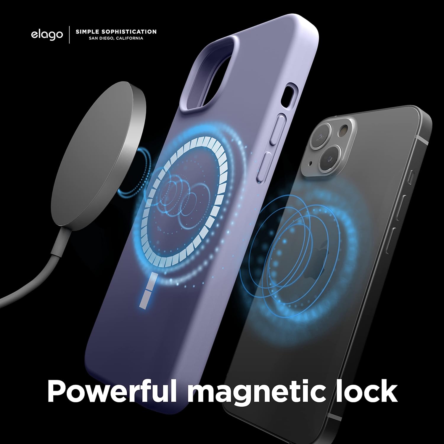 Силиконов калъф elago Magnet, съвместим с iPhone 13 (6.1 инча), съвместим с MagSafe, вградени магнити, висококачествен силикон, защитен калъф, съвместим с аксесоари MagSafe (лилав)