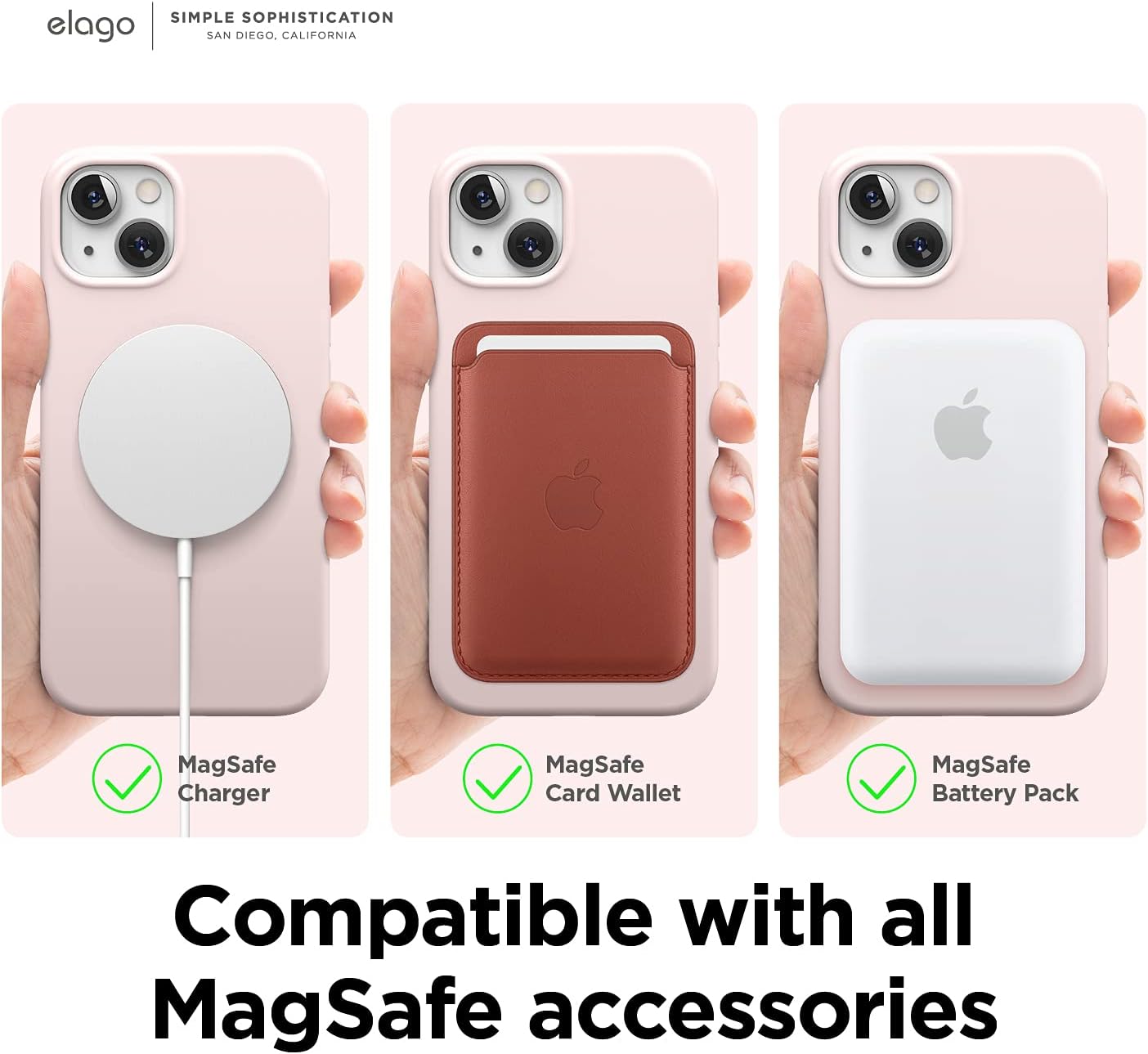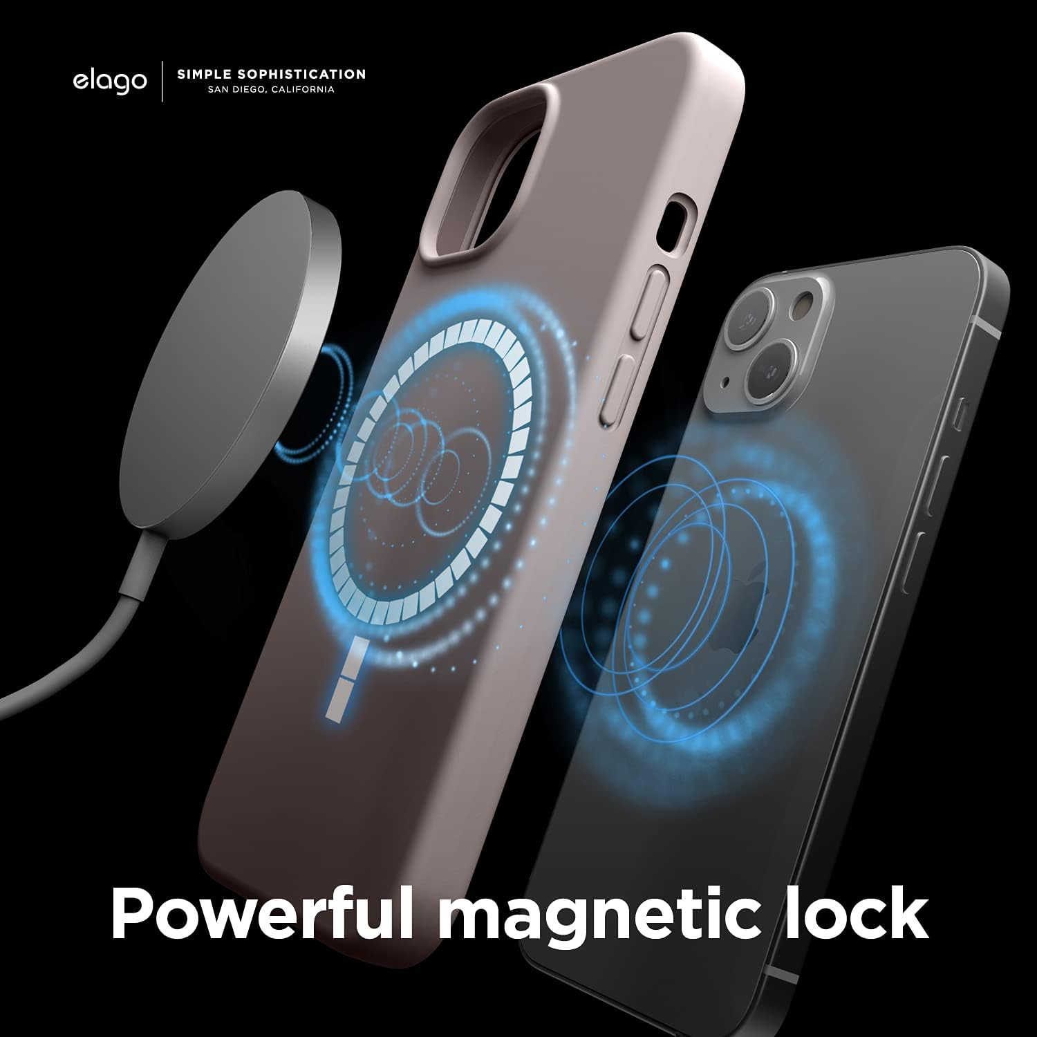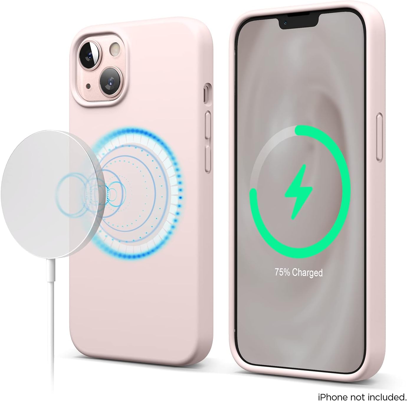 Силиконов калъф elago Magnet, съвместим с iPhone 13 (6.1 инча), съвместим с MagSafe, вградени магнити, висококачествен силикон, защитен калъф, съвместим с аксесоари MagSafe (розов)
