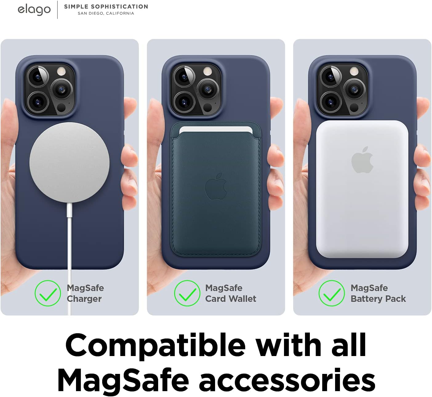 Силиконов калъф elago Magnet, съвместим с iPhone 13 Pro (6.1 инча), съвместим с MagSafe, вградени магнити, висококачествен силикон, защитен калъф, съвместим с аксесоари MagSafe (тъмен)