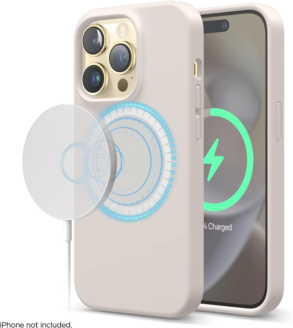 Силиконов калъф elago Magnet, съвместим с iPhone 14 Pro (6,1 инча), съвместим с MagSafe всички аксесоари, вградени магнити, първокласен течен силикон, защитен калъф (бежов)