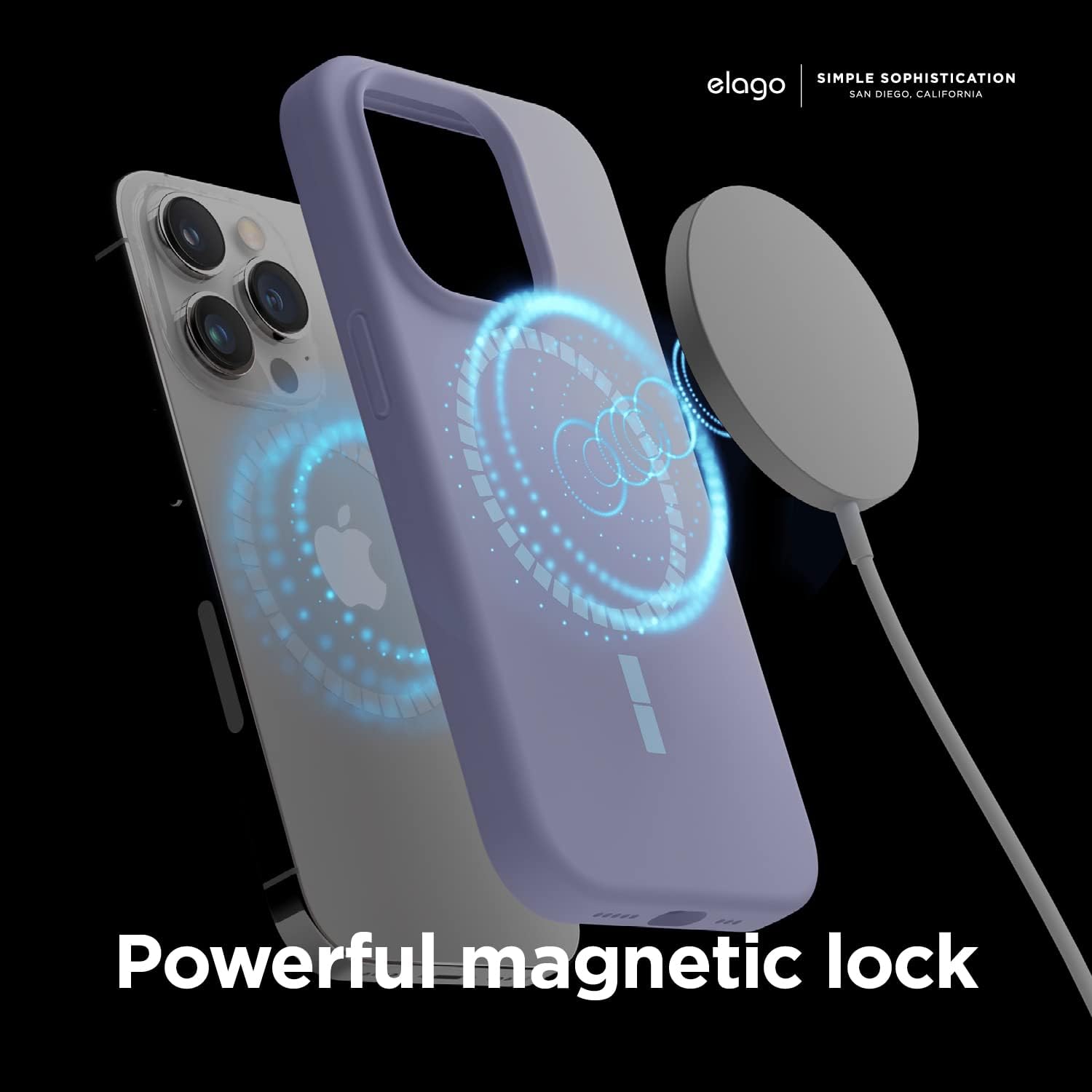 Силиконов калъф elago Magnet, съвместим с iPhone 14 Pro Max (6.7 инча), съвместим с MagSafe всички аксесоари, вградени магнити, първокласен течен силикон, защитен калъф (лилав)