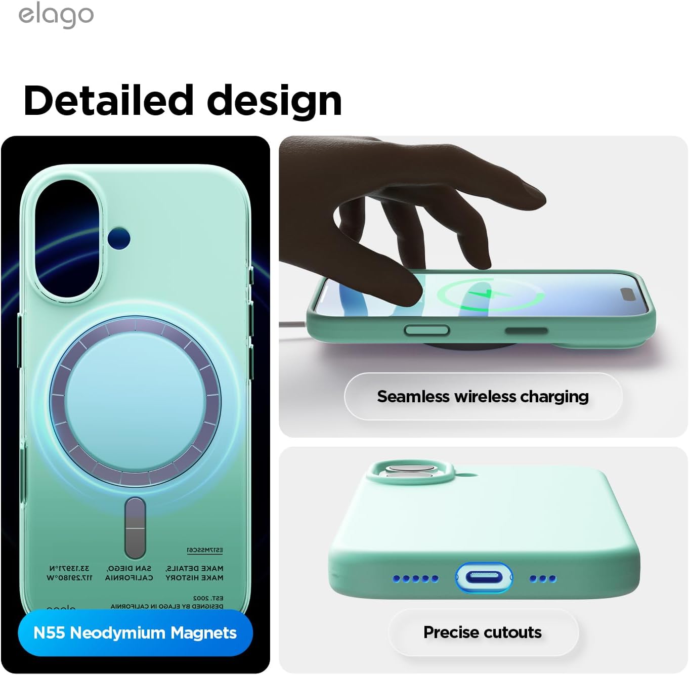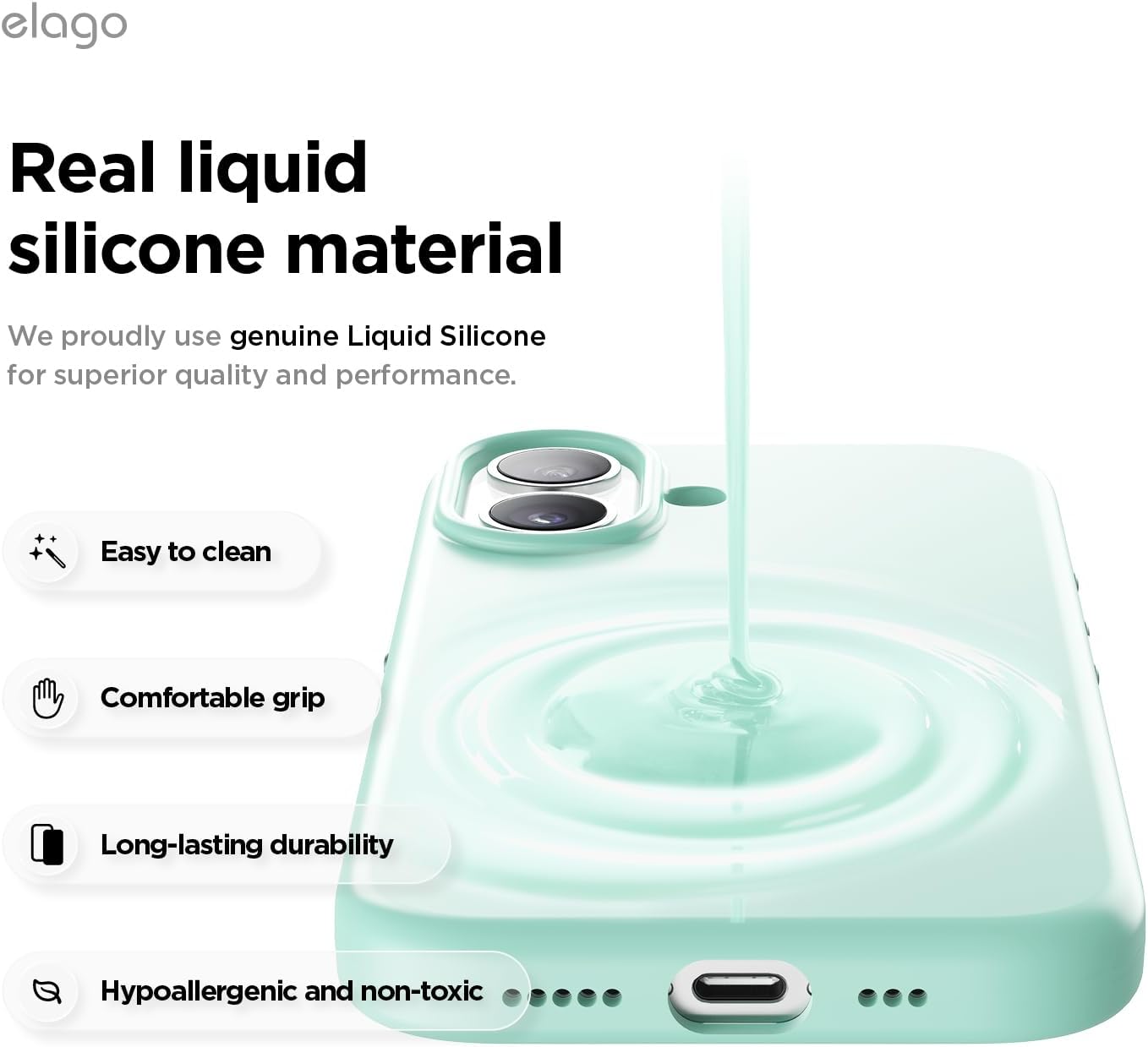 Силиконов калъф elago Magnet за iPhone 17 - съвместим с MagSafe, първокласен течен силикон, удароустойчив, тънък защитен калъф (аква син)