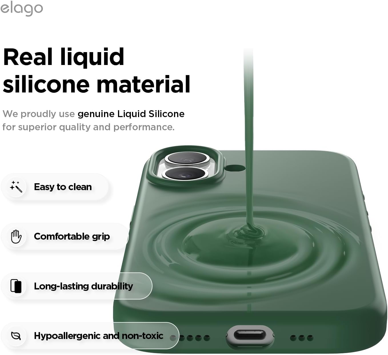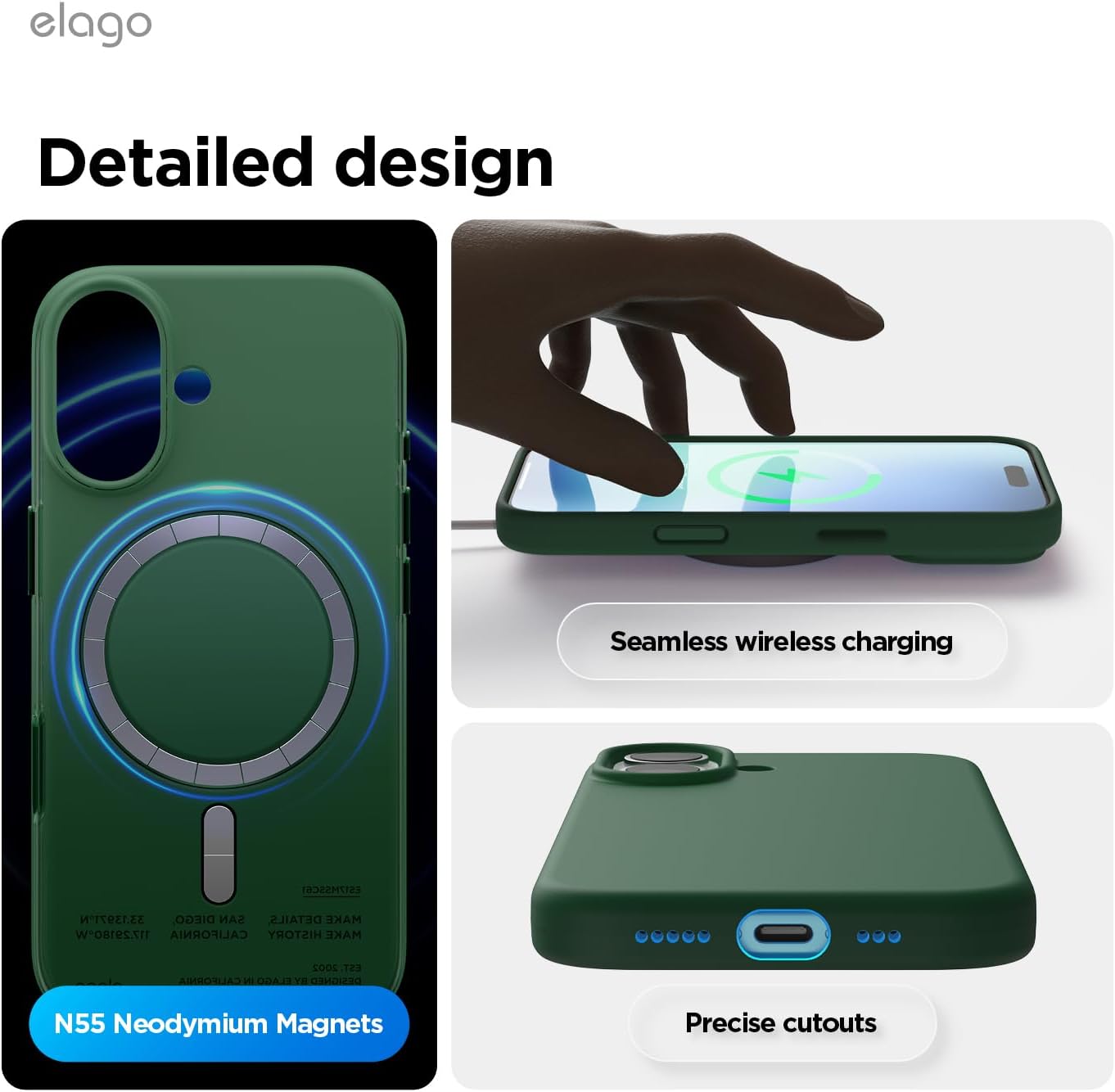 Силиконов калъф elago Magnet за iPhone 17 - съвместим с MagSafe, първокласен течен силикон, удароустойчив, тънък защитен калъф (алпийско зелено)