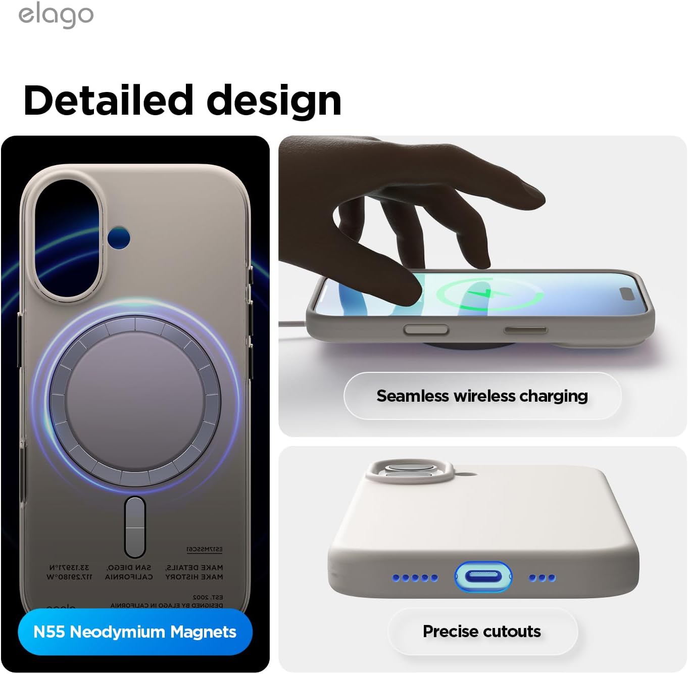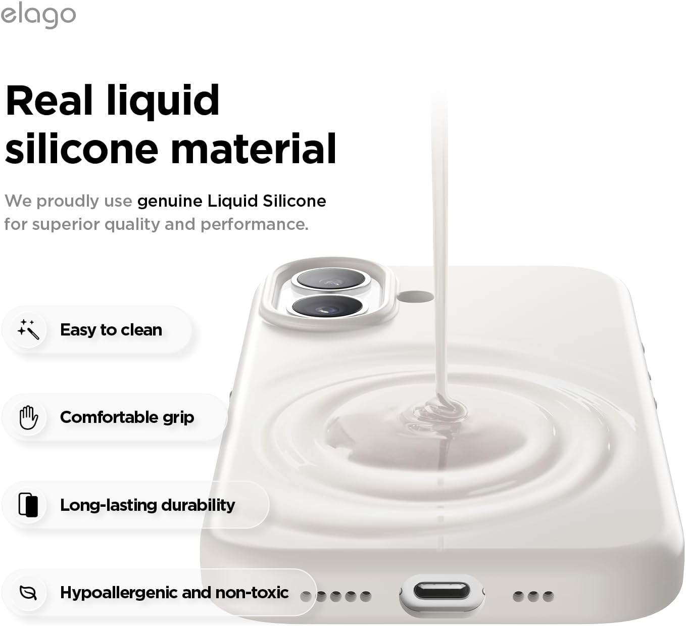 Силиконов калъф elago Magnet за iPhone 17 - съвместим с MagSafe, първокласен течен силикон, удароустойчив, тънък защитен калъф (бежов)