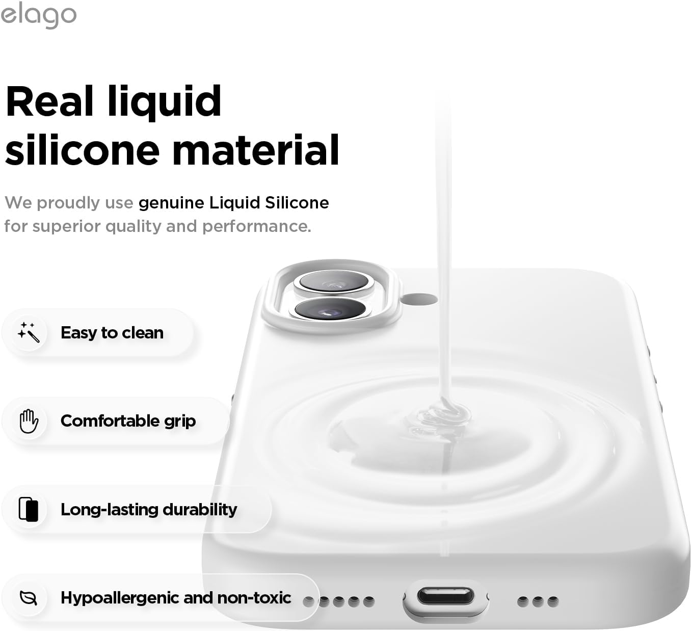 Силиконов калъф elago Magnet за iPhone 17 - съвместим с MagSafe, първокласен течен силикон, удароустойчив, тънък защитен калъф (бял)