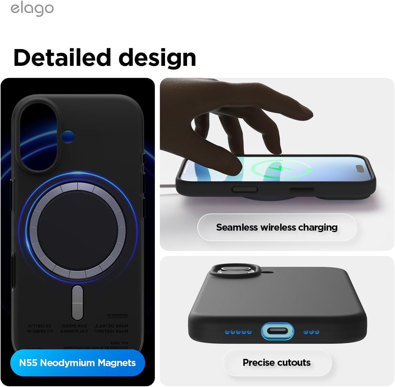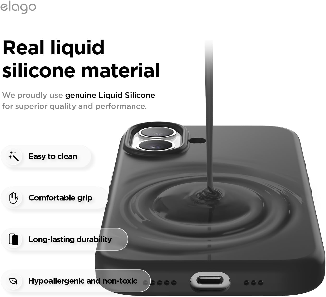 Силиконов калъф elago Magnet за iPhone 17 - съвместим с MagSafe, първокласен течен силикон, удароустойчив, тънък защитен калъф (черен)
