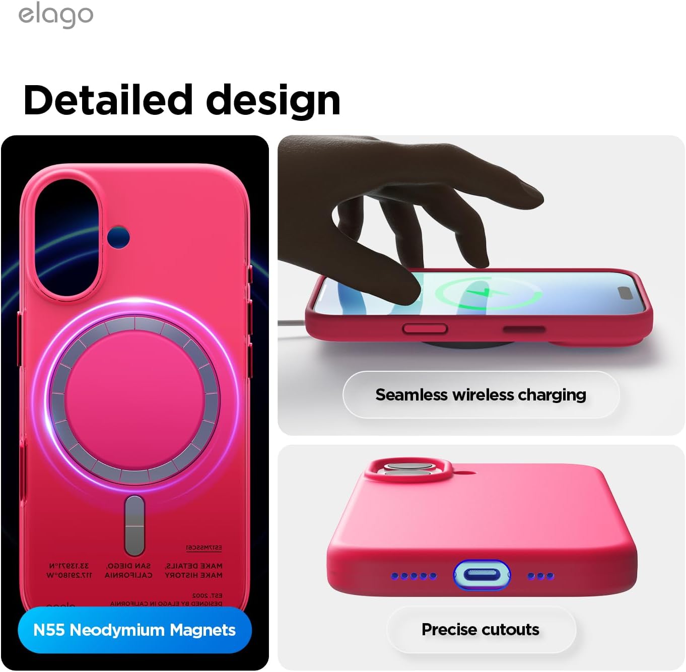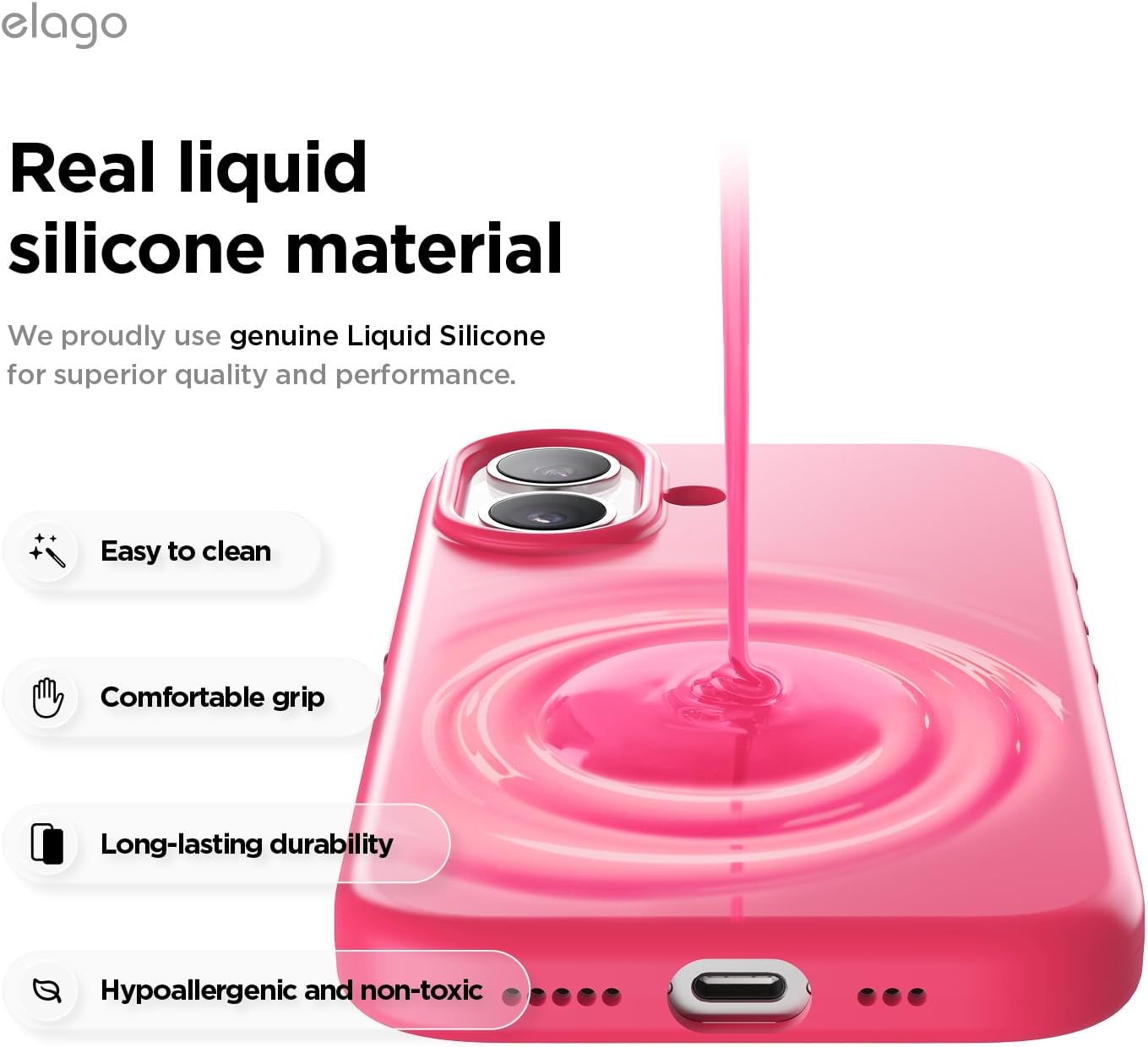 Силиконов калъф elago Magnet за iPhone 17 - съвместим с MagSafe, първокласен течен силикон, удароустойчив, тънък защитен калъф (яркочервен)