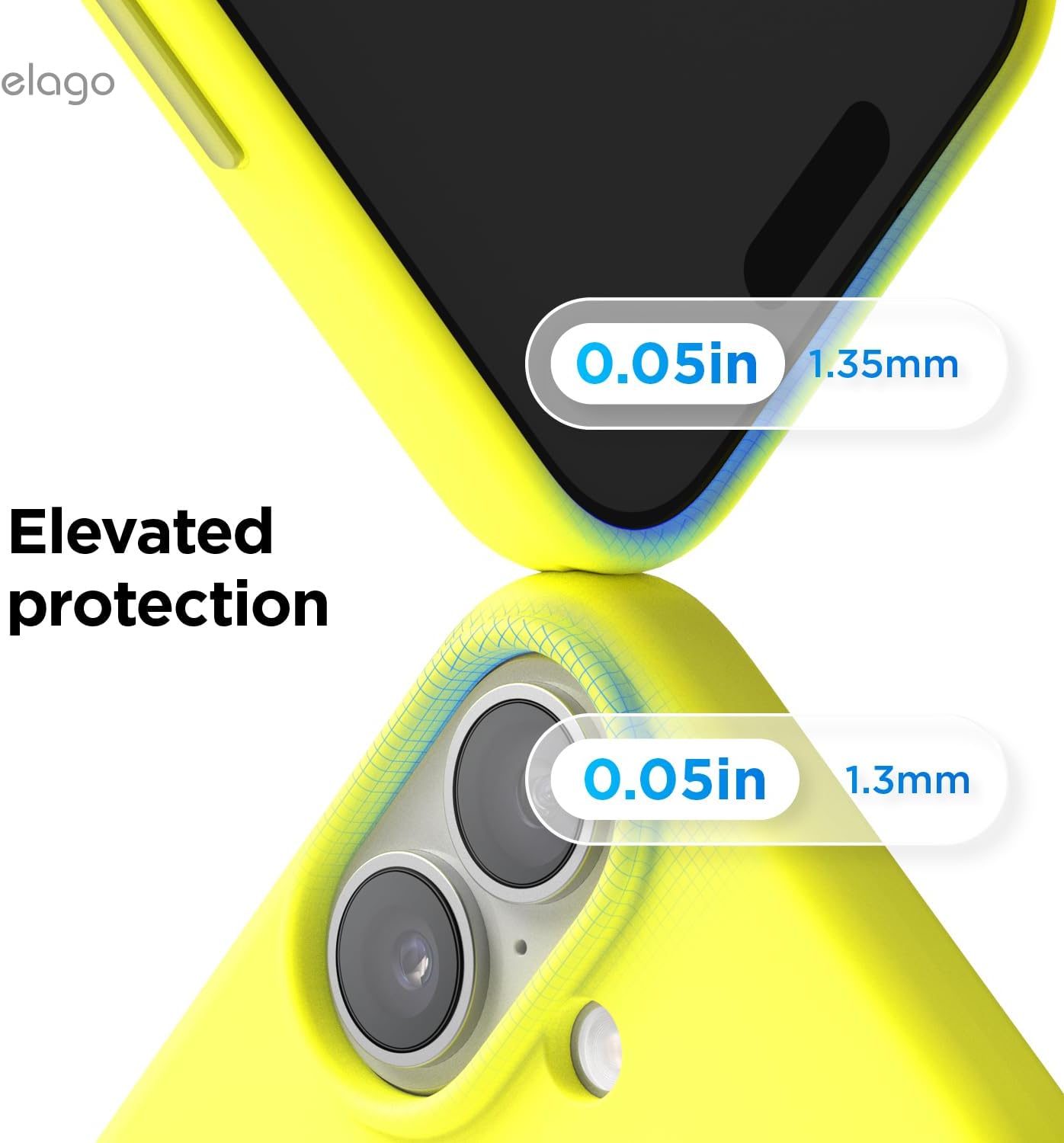 • Повдигнати ръбове за защита: дизайнът с пълно покритие на ръбовете защитава всички страни, портове и бутони; ръбовете около дисплея и камерата са повдигнати с 1 мм, за да предпазят от надраскване на повърхностите. Тънкият дизайн позволява безжично зареждане.