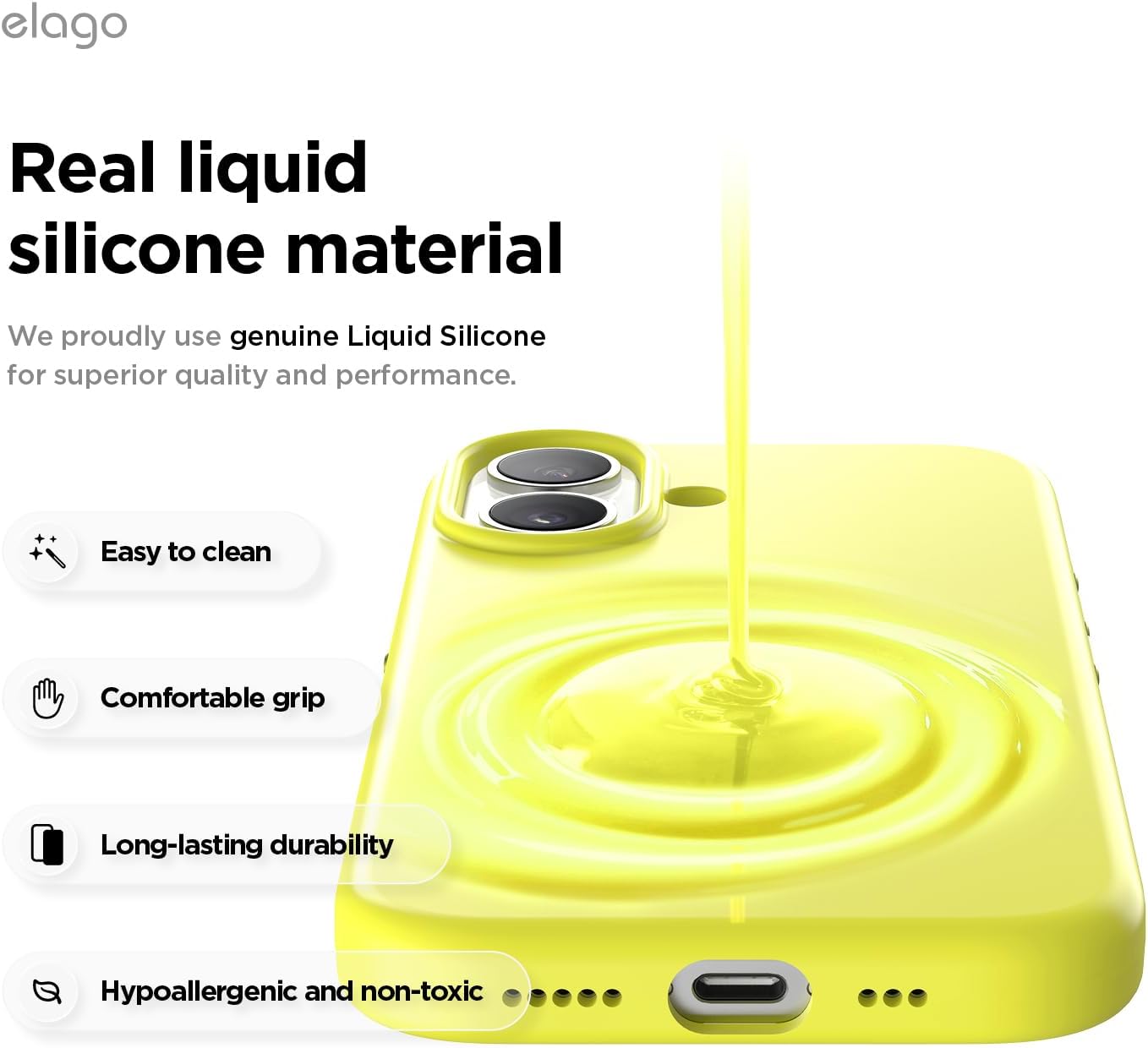 Силиконов калъф elago Magnet за iPhone 17 - съвместим с MagSafe, първокласен течен силикон, удароустойчив, тънък защитен калъф (неоново жълт)