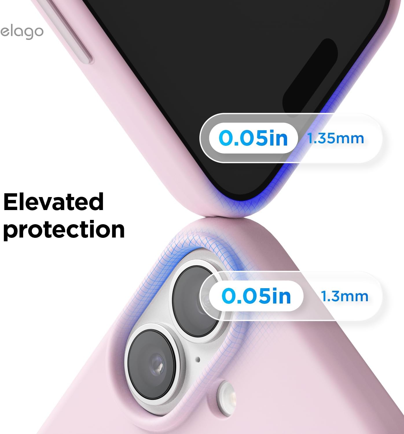 • Повдигнати ръбове за защита: дизайнът с пълно покритие на ръбовете защитава всички страни, портове и бутони; ръбовете около дисплея и камерата са повдигнати с 1 мм, за да предпазят от надраскване на повърхностите. Тънкият дизайн позволява безжично зареждане.