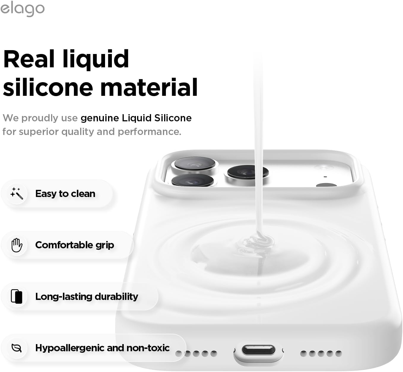 Силиконов калъф elago Magnet за iPhone 17 Pro - съвместим с MagSafe, първокласен течен силикон, удароустойчив, тънък защитен калъф (бял)