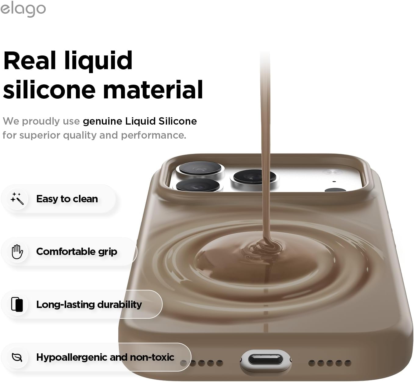 Силиконов калъф elago Magnet за iPhone 17 Pro - съвместим с MagSafe, първокласен течен силикон, удароустойчив, тънък защитен калъф (кафяв)