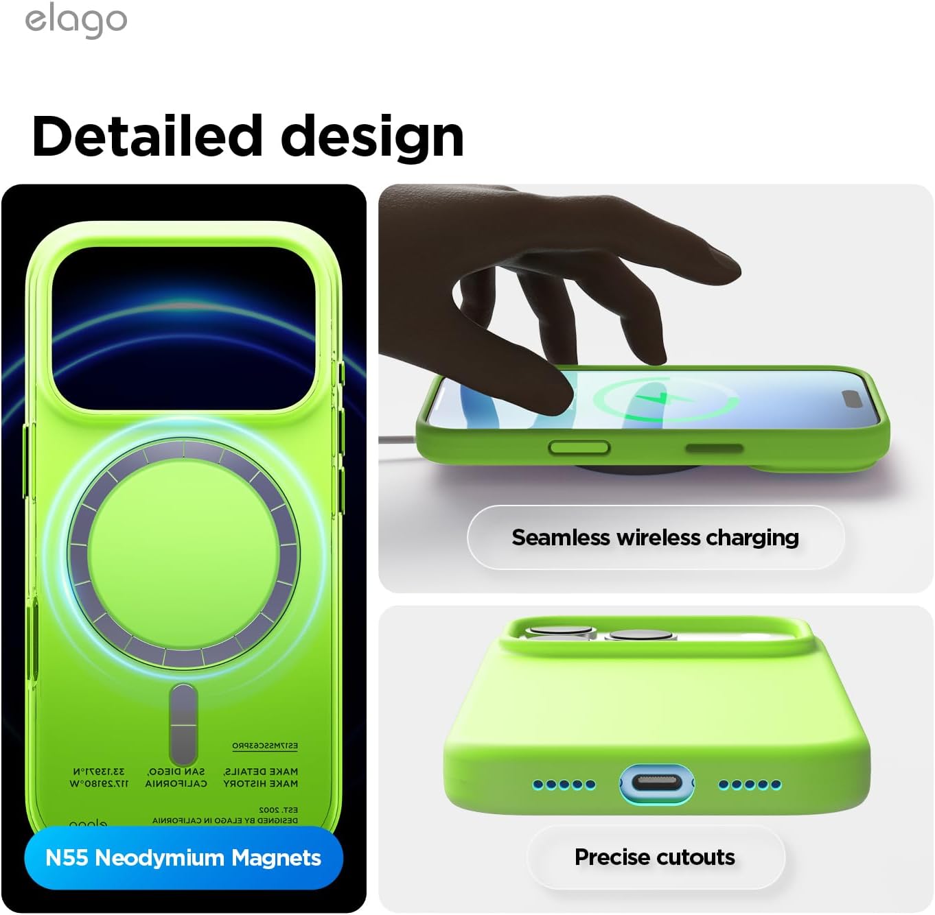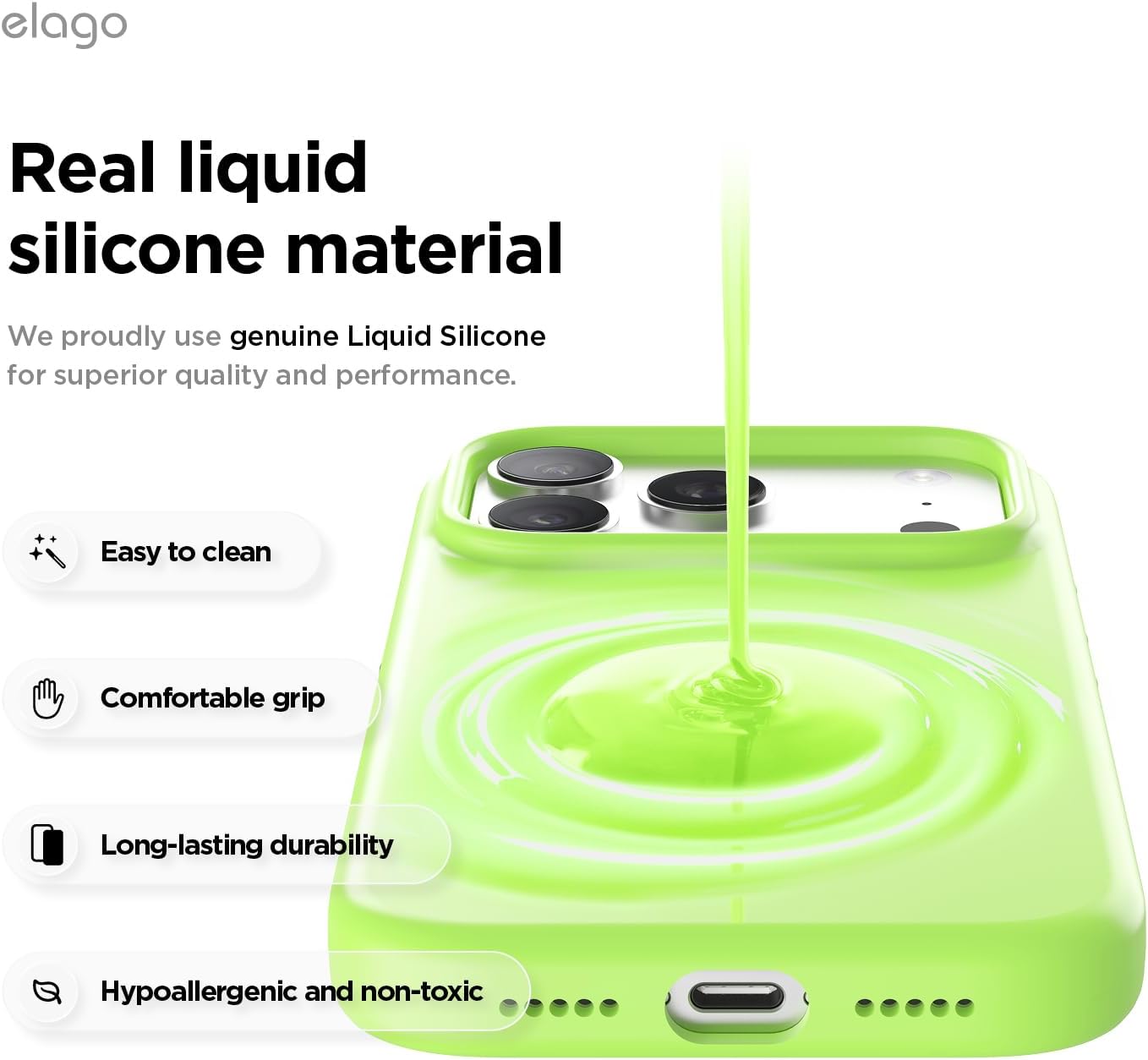 Силиконов калъф elago Magnet за iPhone 17 Pro - съвместим с MagSafe, първокласен течен силикон, удароустойчив, тънък защитен калъф (лаймово жълт)