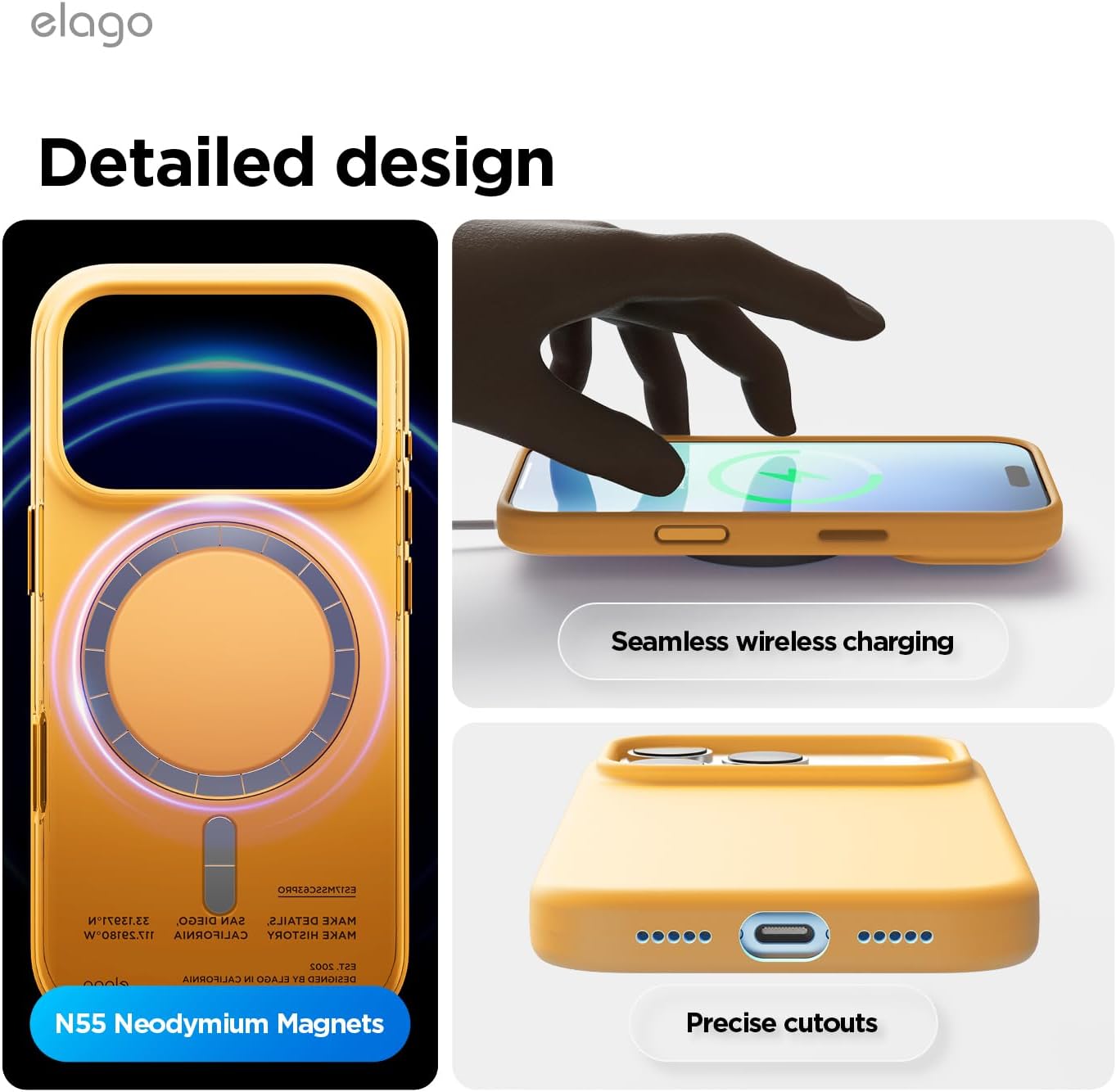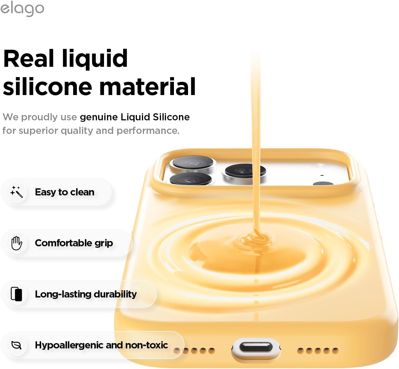 Силиконов калъф elago Magnet за iPhone 17 Pro - съвместим с MagSafe, първокласен течен силикон, удароустойчив, тънък защитен калъф (слънчев)