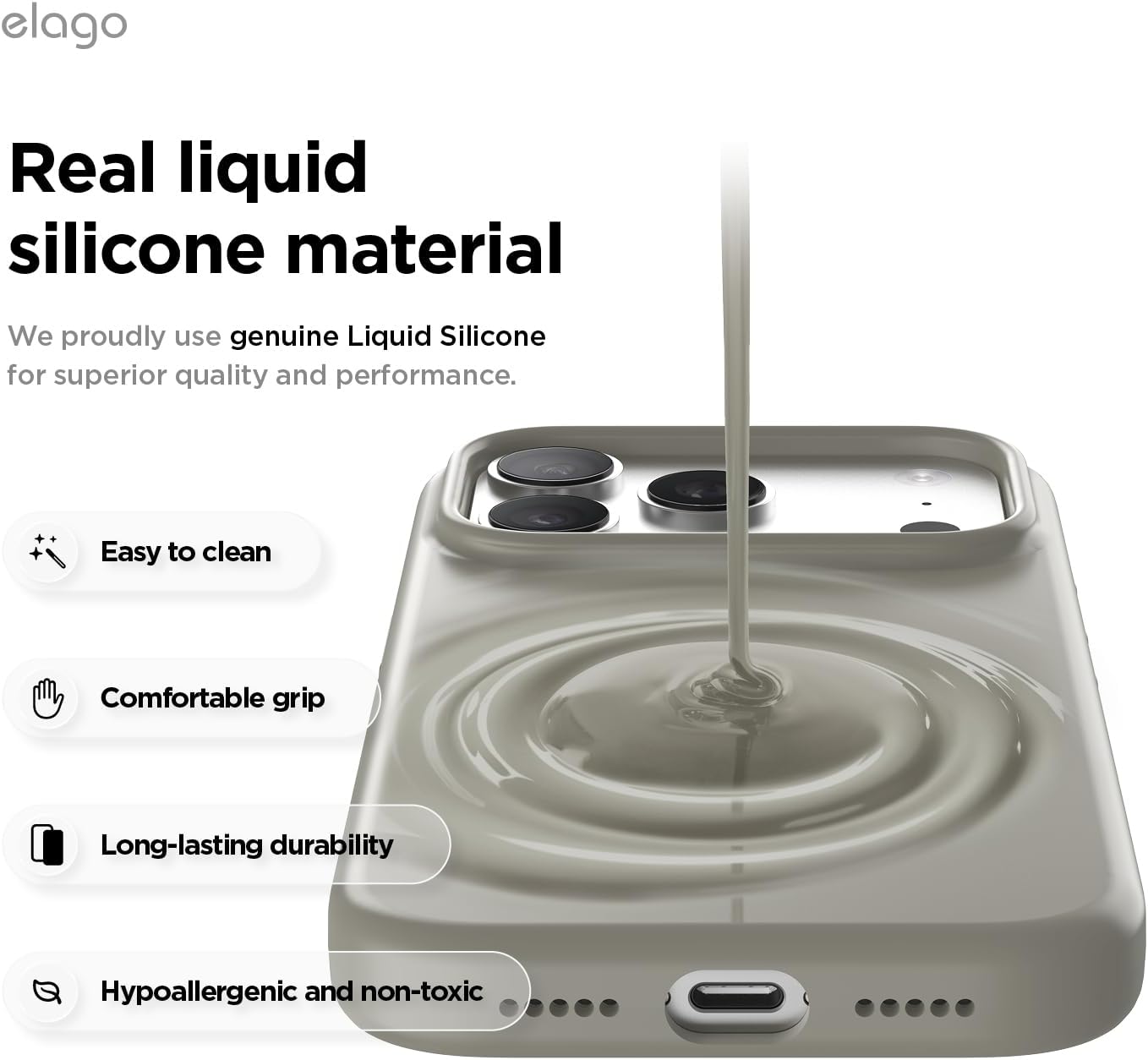Силиконов калъф elago Magnet за iPhone 17 Pro - съвместим с MagSafe, първокласен течен силикон, удароустойчив, тънък защитен калъф (средно сив)