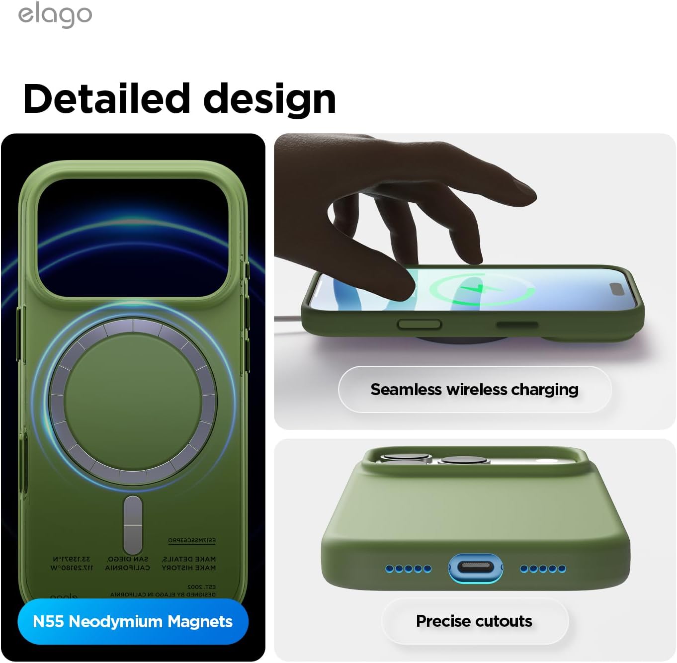 Силиконов калъф elago Magnet за iPhone 17 Pro - съвместим с MagSafe, първокласен течен силикон, удароустойчив, тънък защитен калъф (зелен)