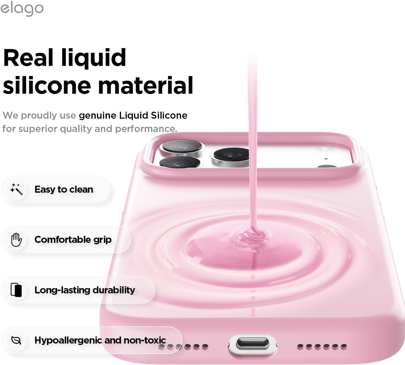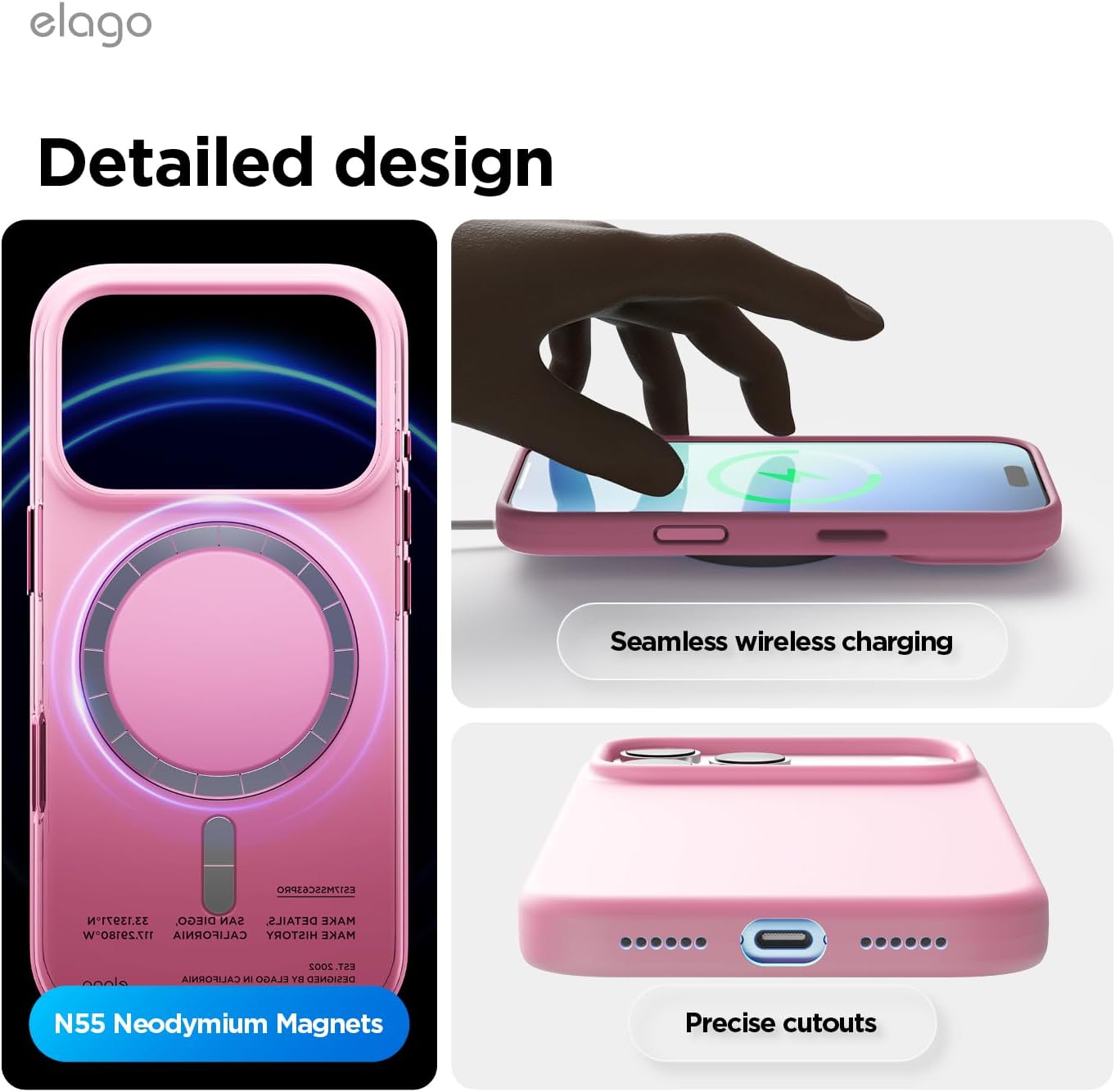Силиконов калъф elago Magnet за iPhone 17 Pro Max - съвместим с MagSafe, първокласен течен силикон, удароустойчив, тънък защитен калъф (ярко розов)