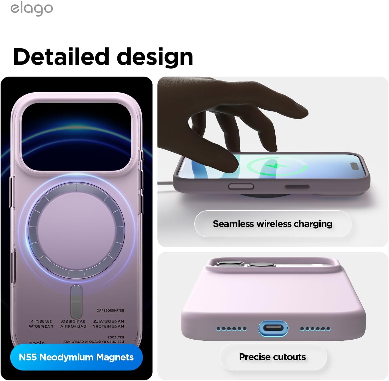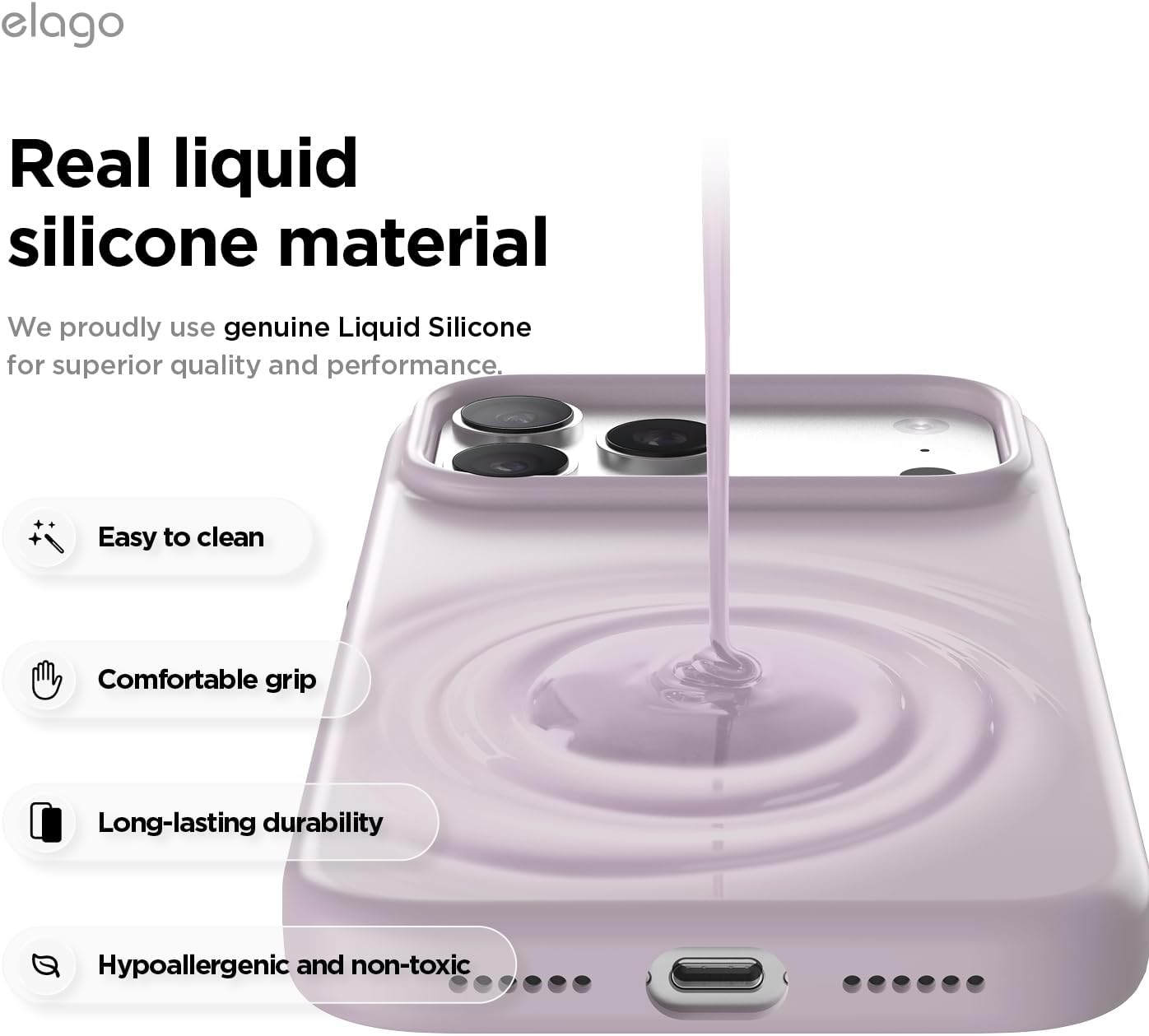 Силиконов калъф elago Magnet за iPhone 17 Pro Max - съвместим с MagSafe, първокласен течен силикон, удароустойчив, тънък защитен калъф (меко лилаво)