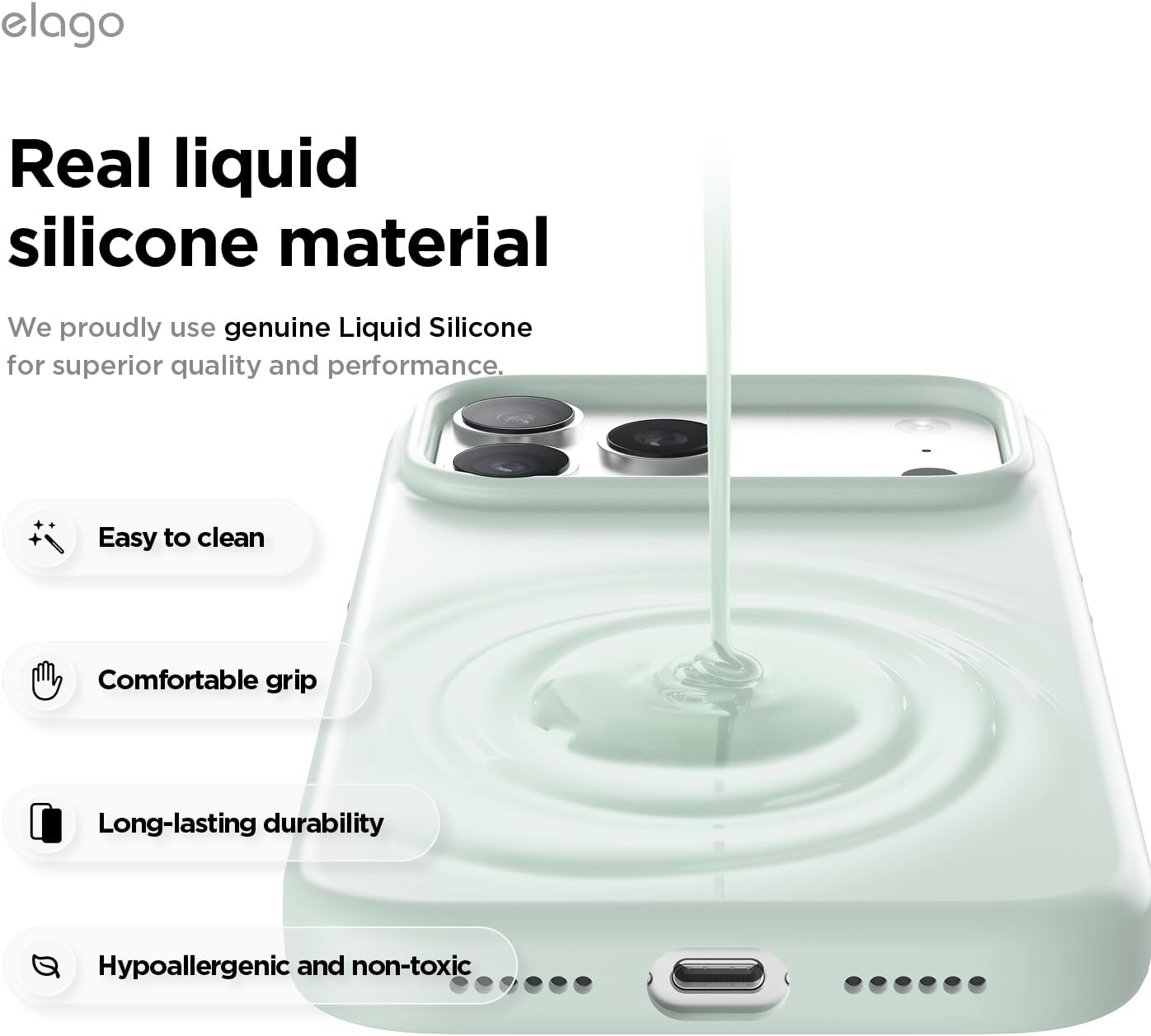 Силиконов калъф elago Magnet за iPhone 17 Pro Max - съвместим с MagSafe, първокласен течен силикон, удароустойчив, тънък защитен калъф (ментово зелен)