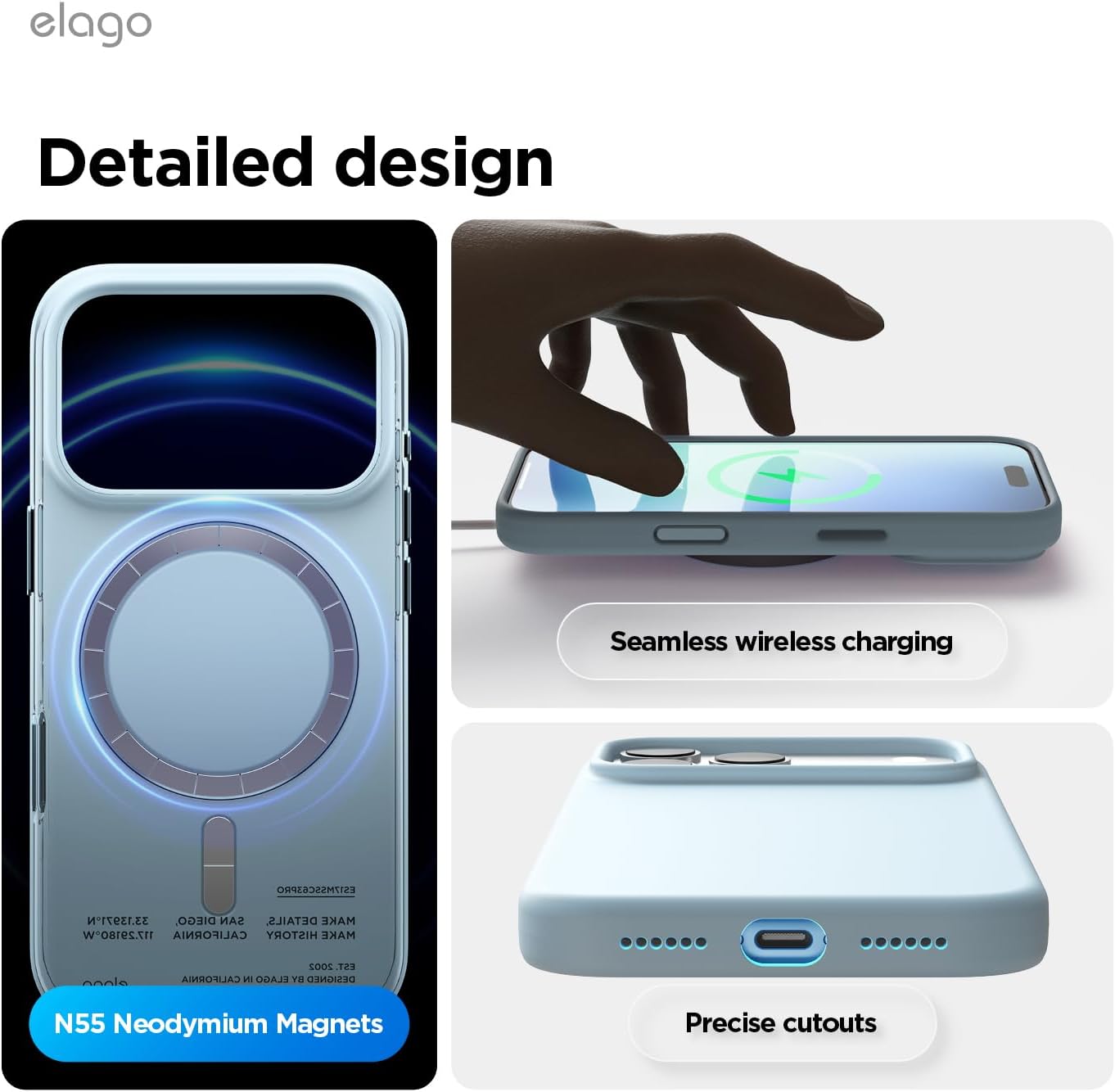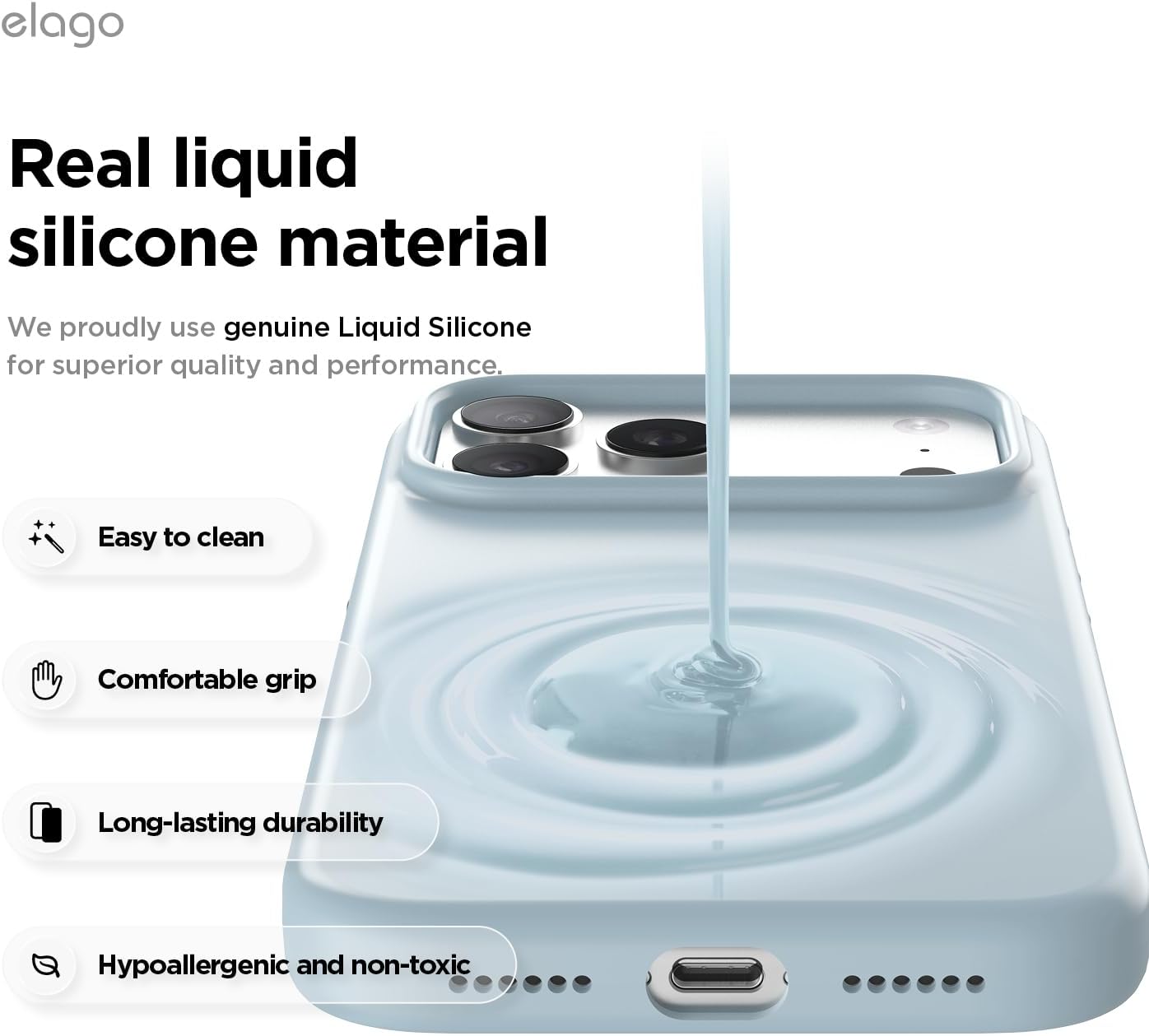 Силиконов калъф elago Magnet за iPhone 17 Pro Max - съвместим с MagSafe, първокласен течен силикон, удароустойчив, тънък защитен калъф (небесно син)