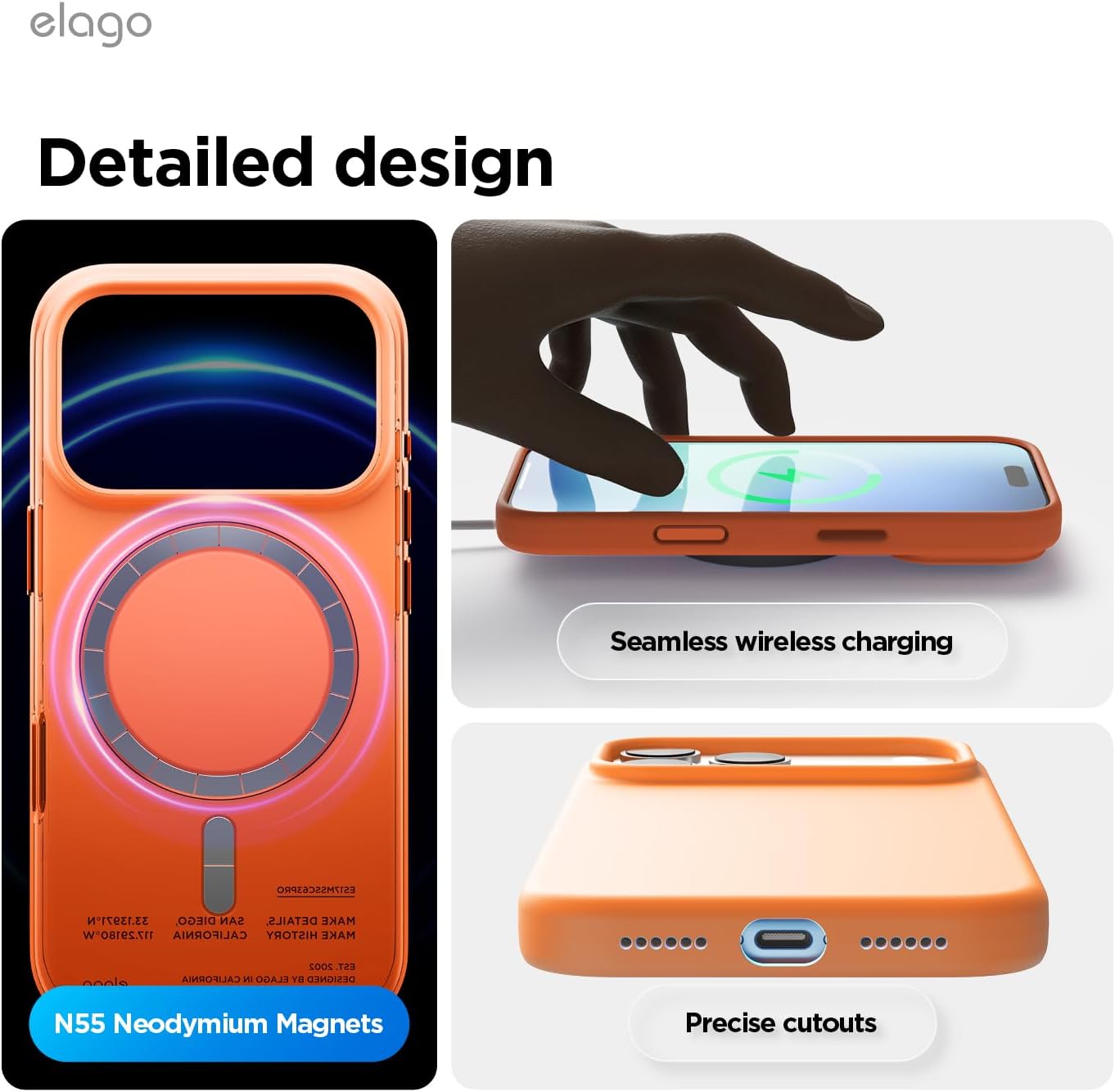• Вътрешен дизайн за iPhone 17 Pro: това не е стандартен калъф. Дизайнерският екип на elagos проектира, тества и оптимизира всяка извивка за персонализирано прилягане, стилен външен вид и ежедневна защита от падане – всичко от един източник.