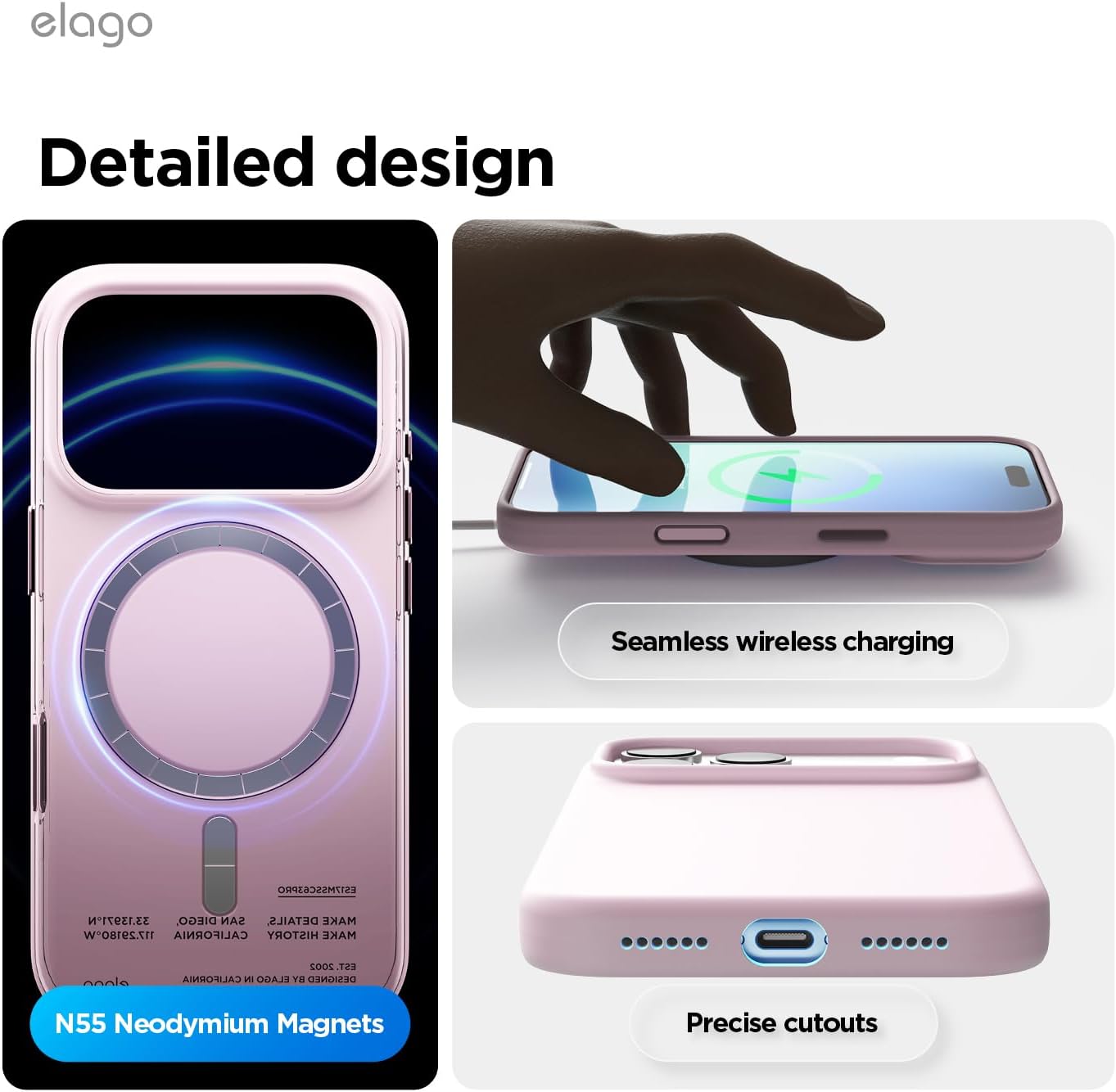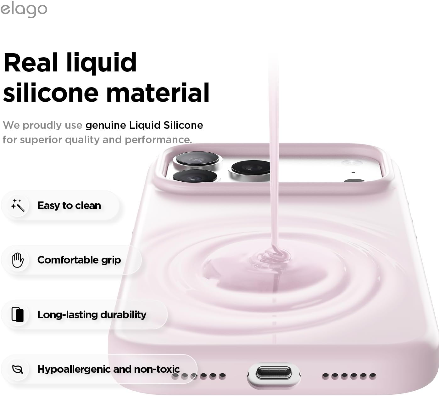 Силиконов калъф elago Magnet за iPhone 17 Pro Max - съвместим с MagSafe, първокласен течен силикон, удароустойчив, тънък защитен калъф (светло лилав)