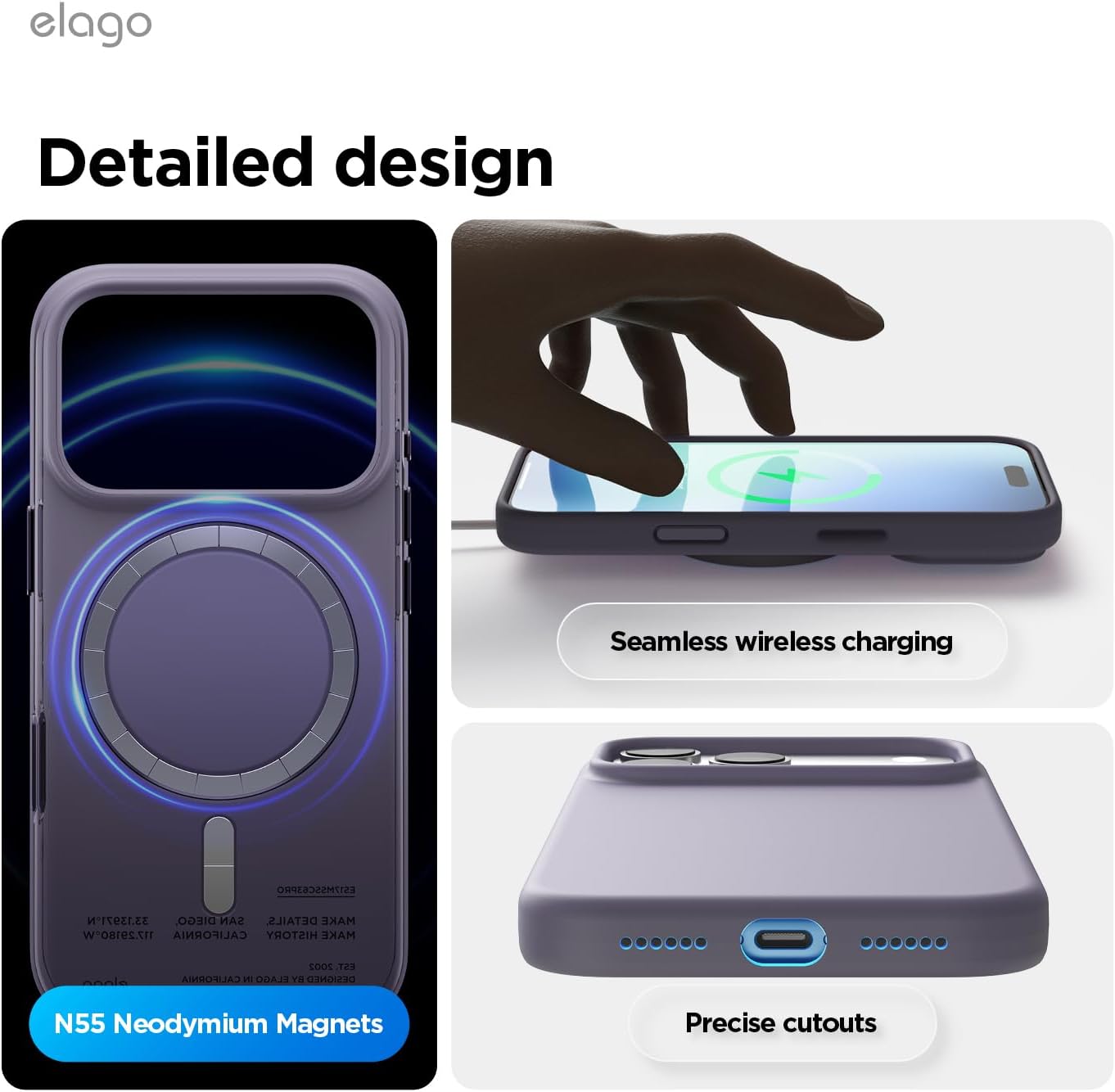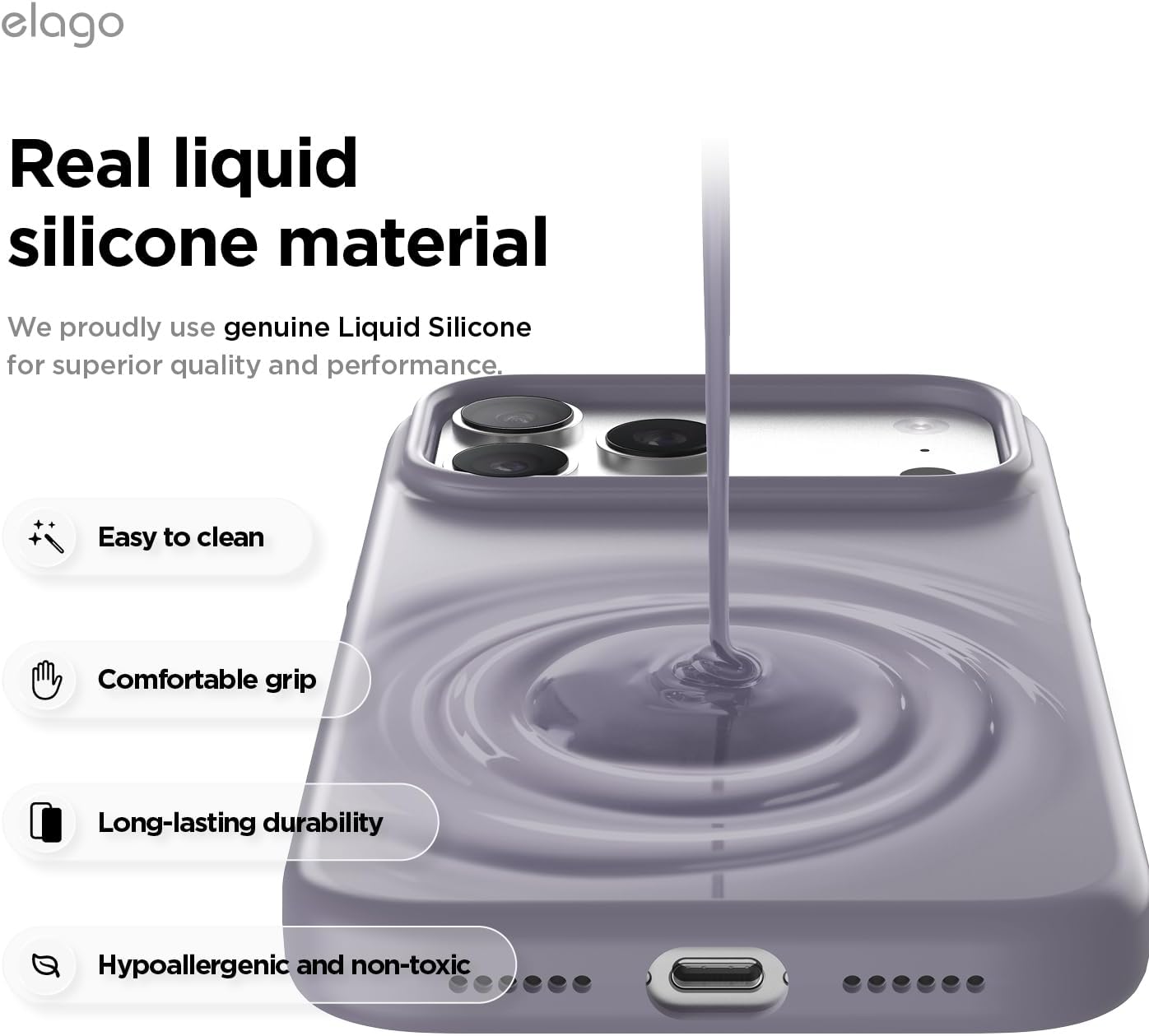 Силиконов калъф elago Magnet за iPhone 17 Pro Max - съвместим с MagSafe, първокласен течен силикон, удароустойчив, тънък защитен калъф (тъмно лавандулов)