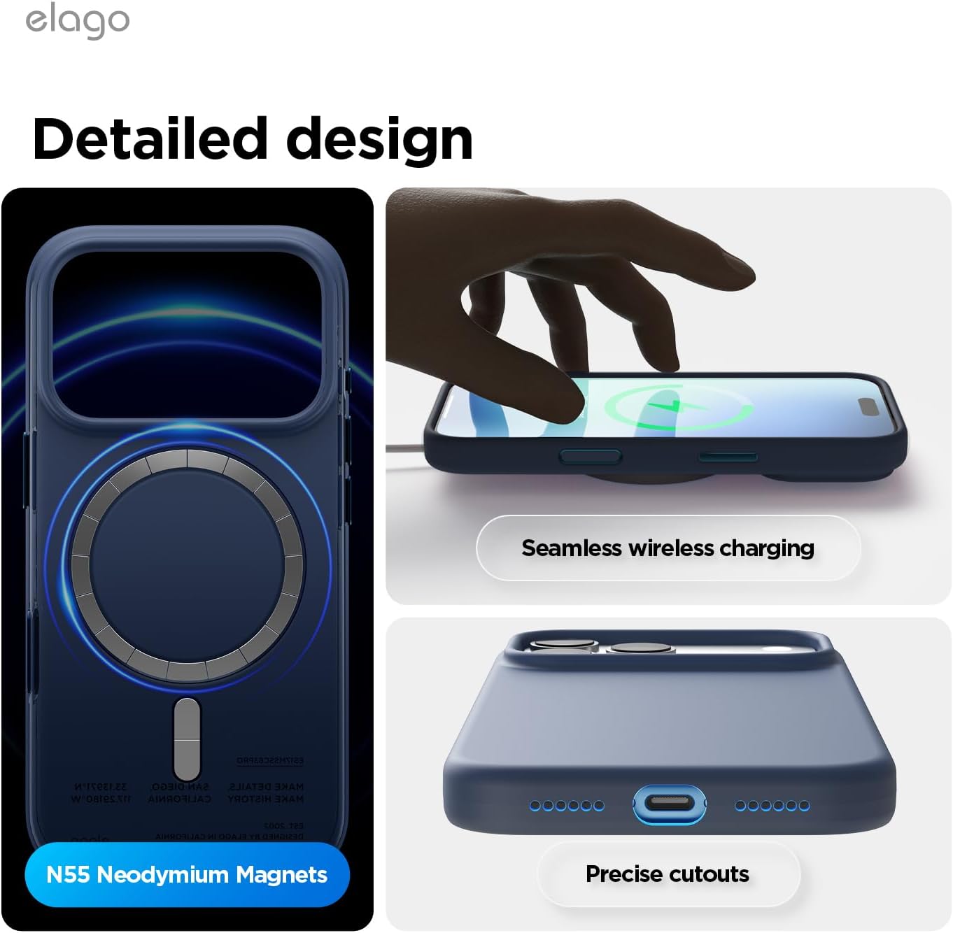 • Вътрешен дизайн за iPhone 17 Pro: това не е стандартен калъф. Дизайнерският екип на elagos проектира, тества и оптимизира всяка извивка за персонализирано прилягане, стилен външен вид и ежедневна защита от падане – всичко от един източник.