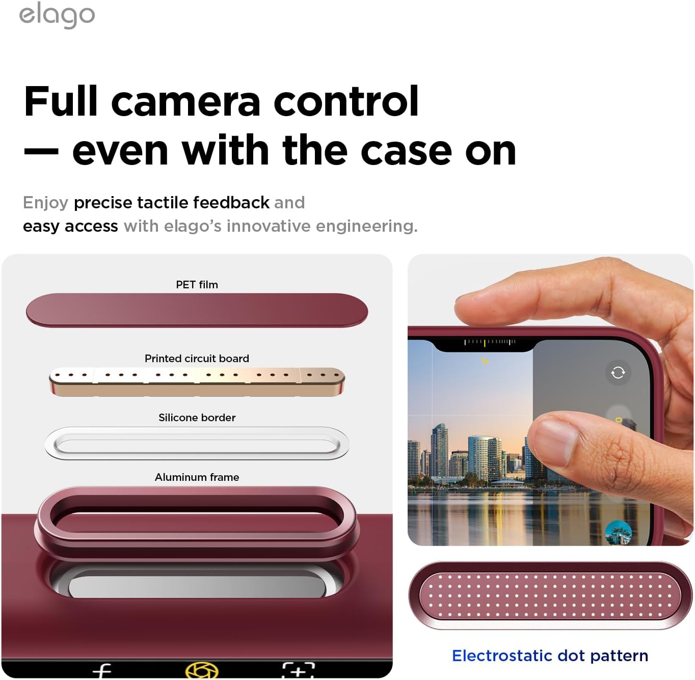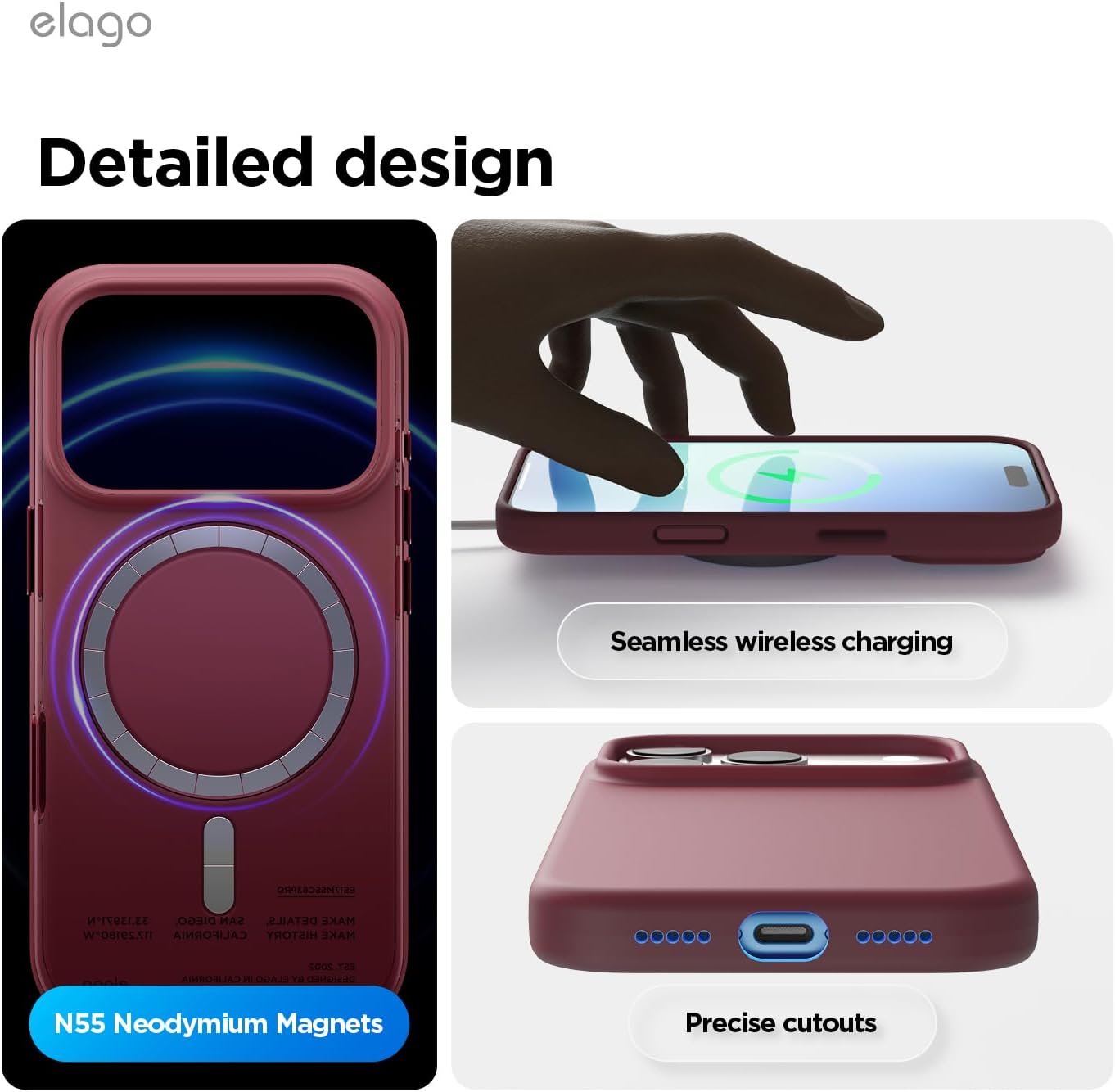 • Вътрешен дизайн за iPhone 17 Pro: това не е стандартен калъф. Дизайнерският екип на elagos проектира, тества и оптимизира всяка извивка за персонализирано прилягане, стилен външен вид и ежедневна защита от падане – всичко от един източник.