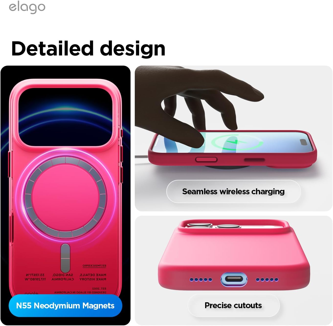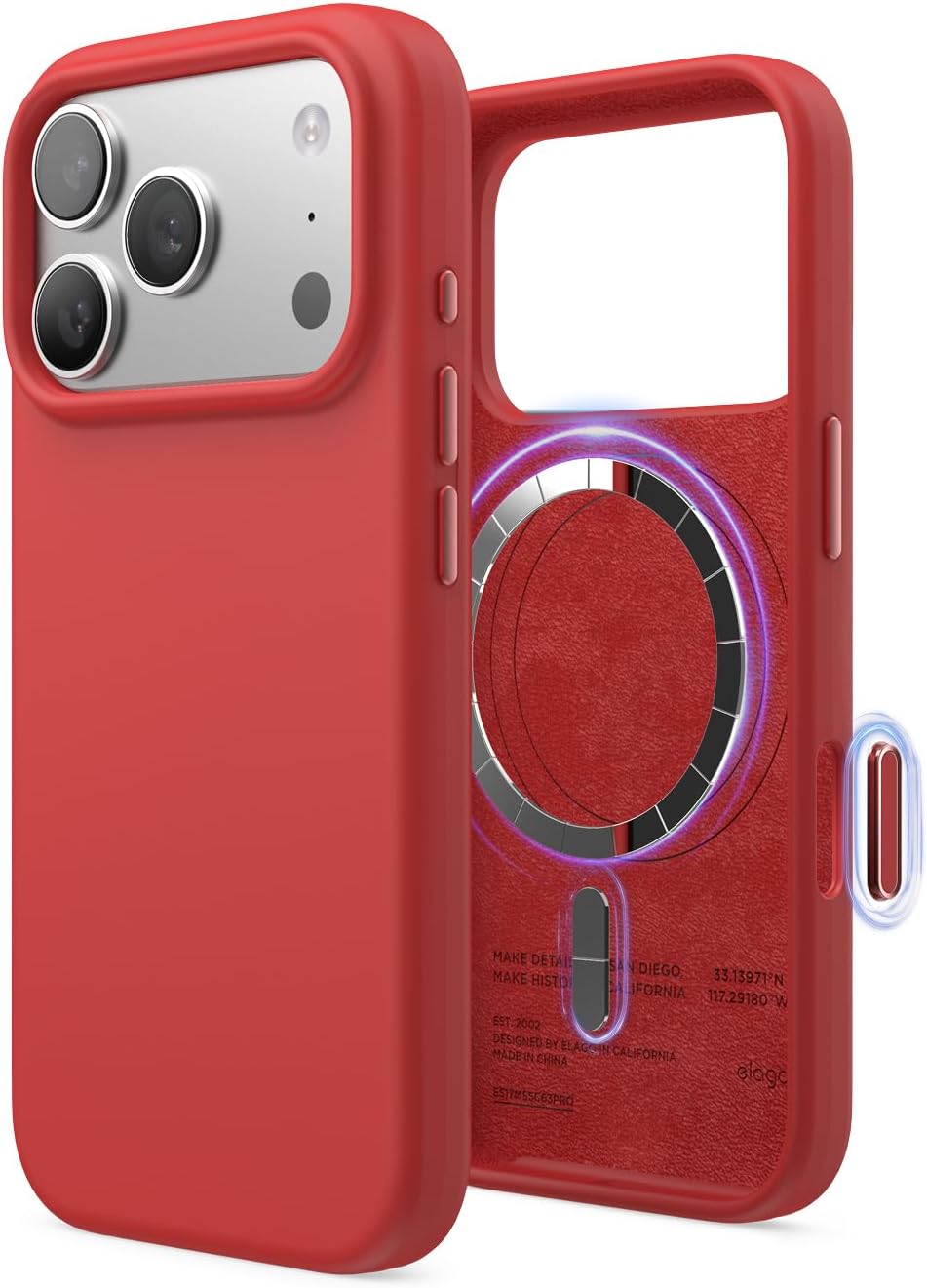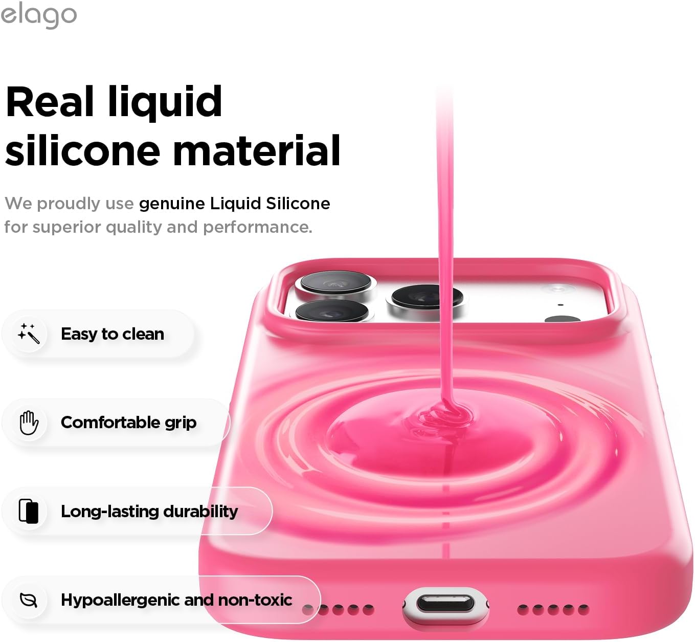 Силиконов калъф elago Magnet за iPhone 17 Pro, съвместим с MagSafe, първокласен течен силикон, удароустойчив, тънък защитен калъф (яркочервен)