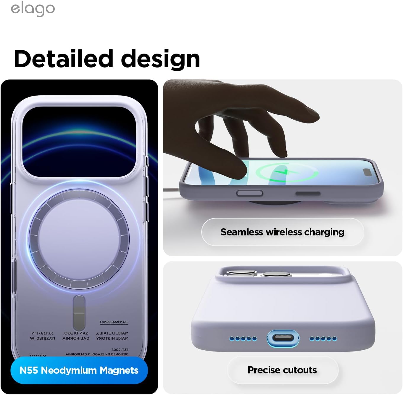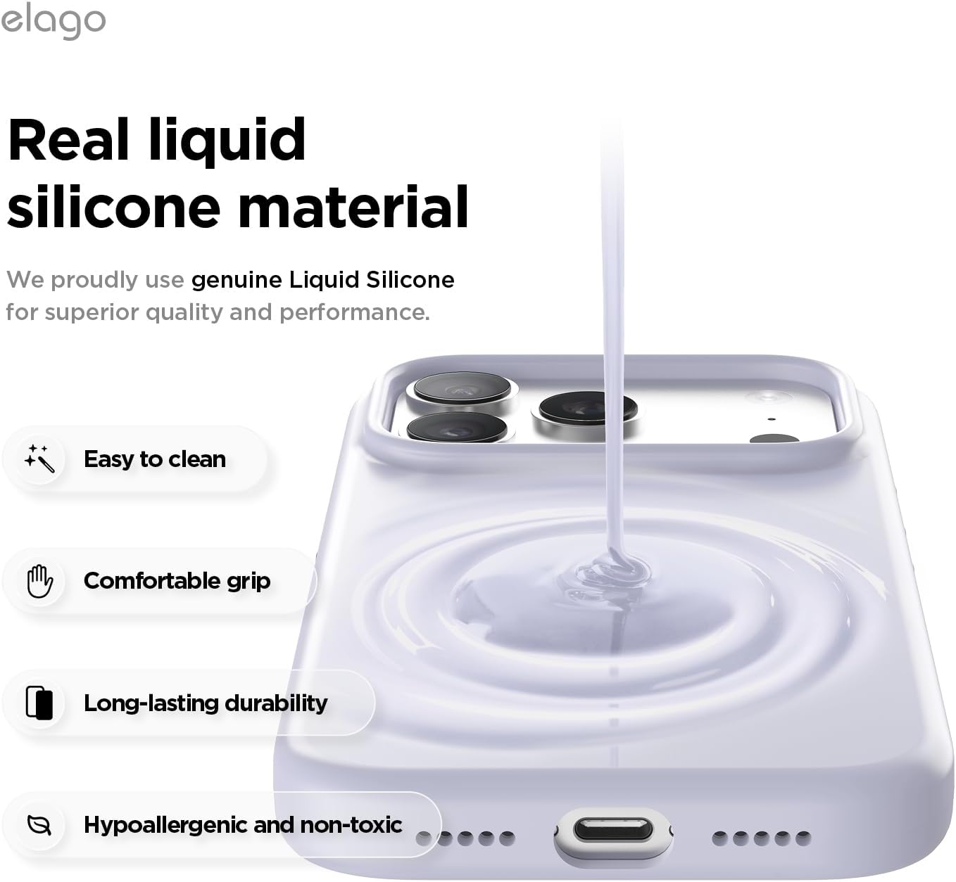 Силиконов калъф elago Magnet за iPhone 17 Pro, съвместим с MagSafe, първокласен течен силикон, удароустойчив, тънък защитен калъф (лилав)