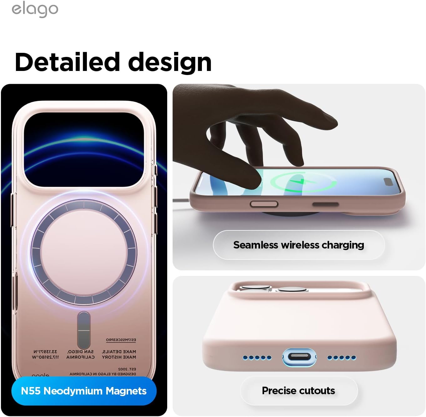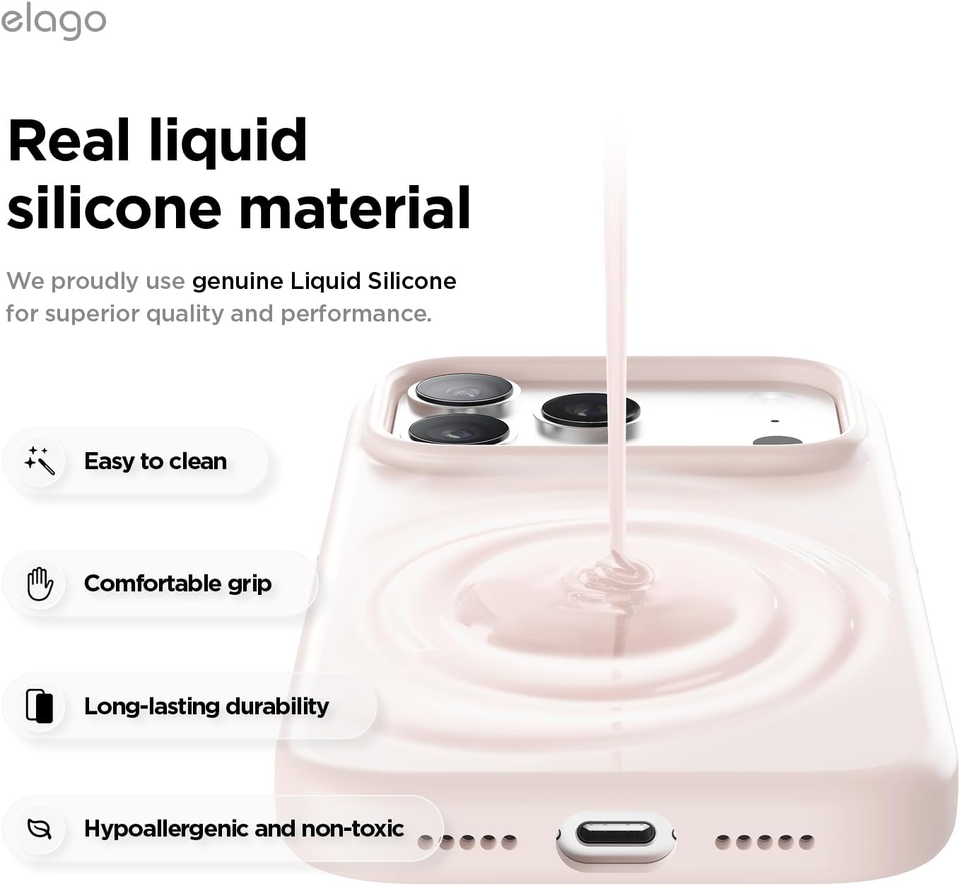 Силиконов калъф elago Magnet за iPhone 17 Pro, съвместим с MagSafe, първокласен течен силикон, удароустойчив, тънък защитен калъф (прекрасен розов)