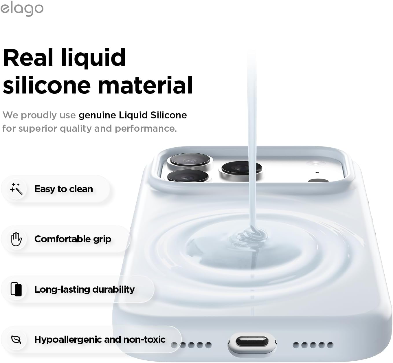 Силиконов калъф elago Magnet за iPhone 17 Pro, съвместим с MagSafe, първокласен течен силикон, удароустойчив, тънък защитен калъф (светлосин)
