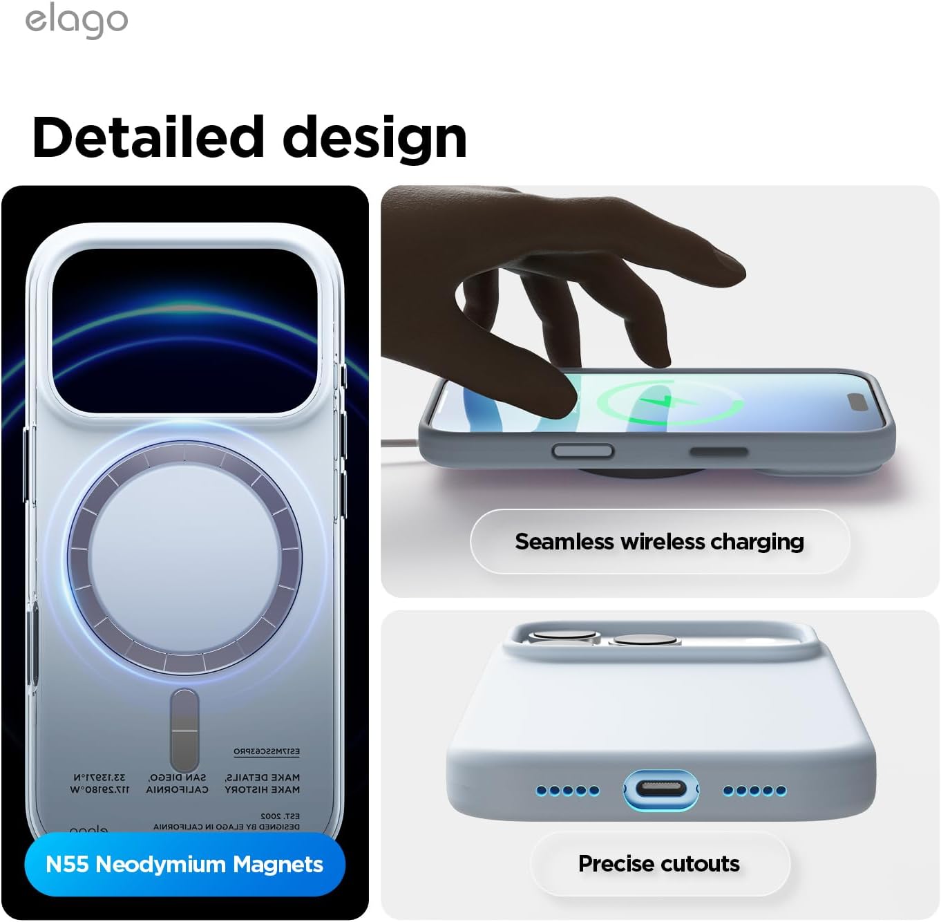 • Вътрешен дизайн за iPhone 17 Pro: това не е стандартен калъф. Дизайнерският екип на elagos проектира, тества и оптимизира всяка извивка за персонализирано прилягане, стилен външен вид и ежедневна защита от падане – всичко от един източник.