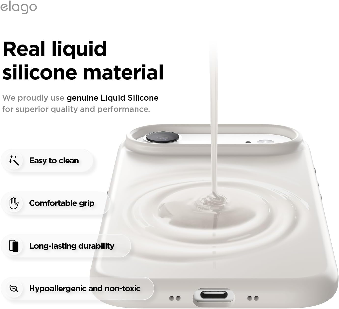 Силиконов калъф elago Magnet за iPhone Air - съвместим с MagSafe, първокласен течен силикон, удароустойчив, тънък защитен калъф (бежов)