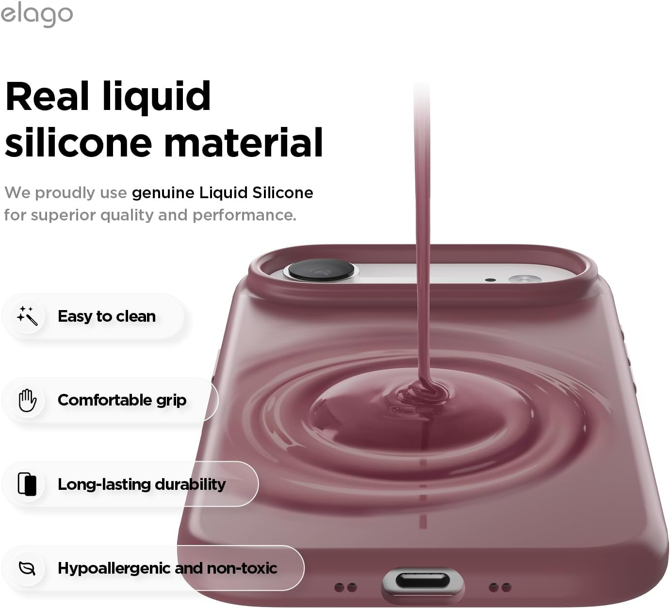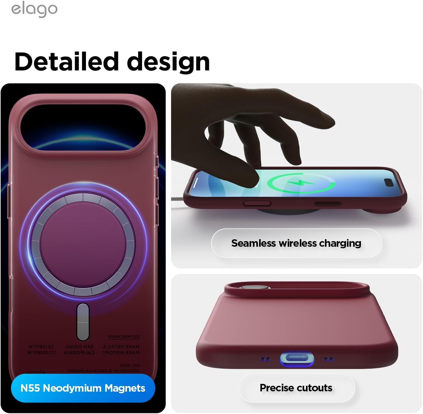Силиконов калъф elago Magnet за iPhone Air - съвместим с MagSafe, първокласен течен силикон, удароустойчив, тънък защитен калъф (бордо)