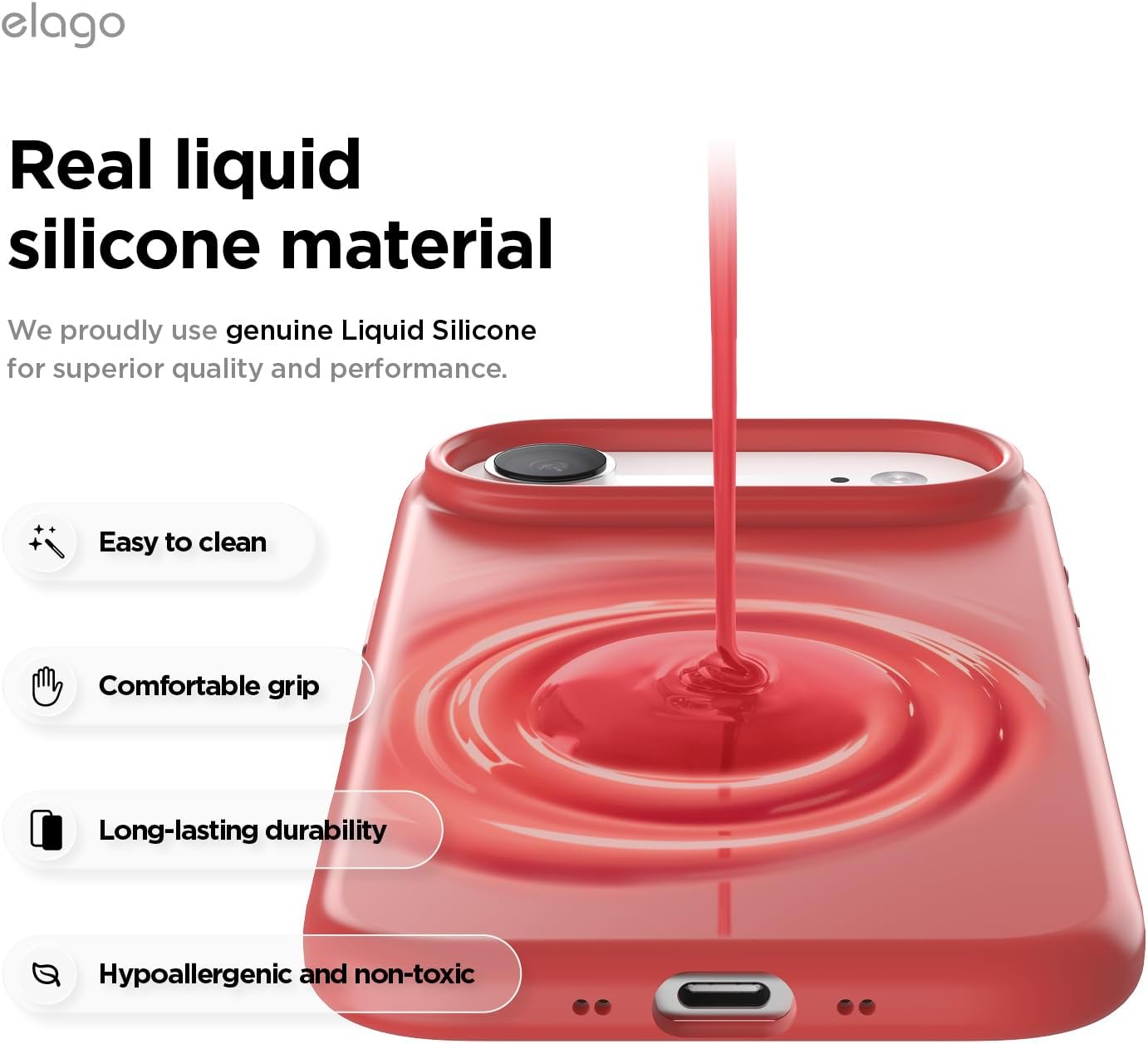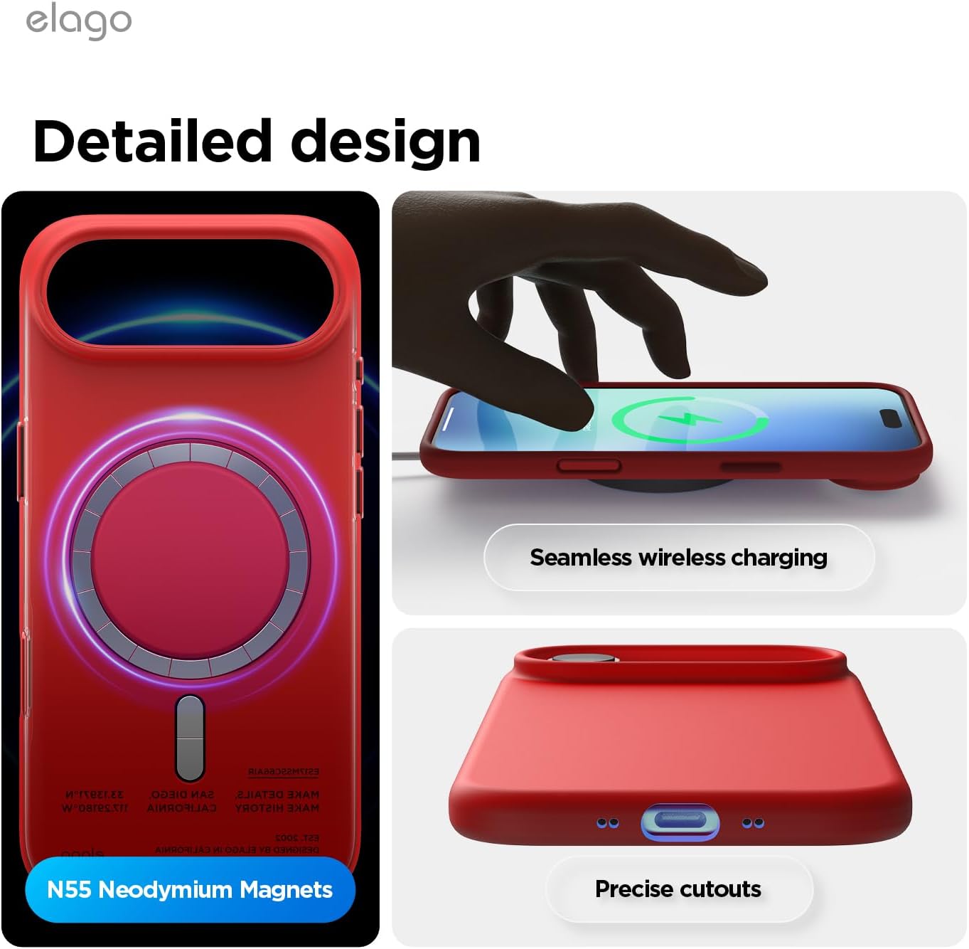 Силиконов калъф elago Magnet за iPhone Air - съвместим с MagSafe, първокласен течен силикон, удароустойчив, тънък защитен калъф (червен)